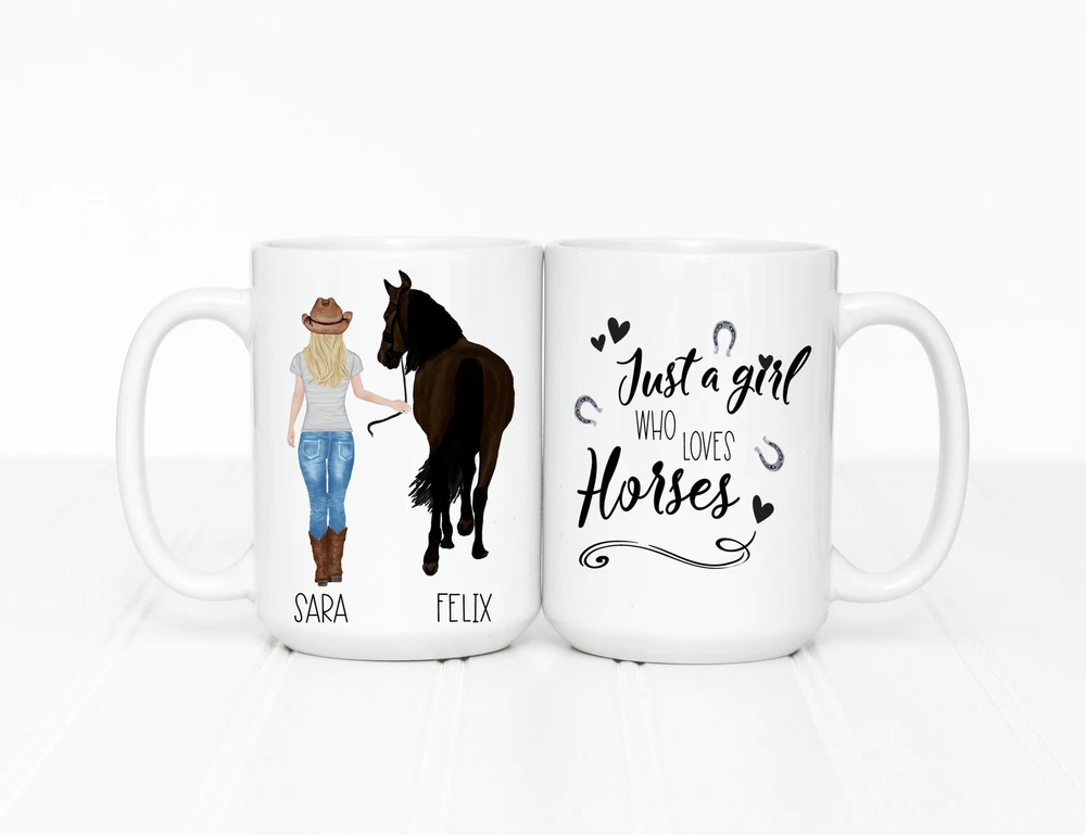 Personalized Horse Mug Personalized Gift For Her Custom Horse Mug Girlfriend Product Details.. This high quality 11oz. ceramic white mug has a premium hard coat that provides crisp and vibrant color reproduction sure to last for years. Perfect for all hot & cold beverages. The highest quality printing possible is used. It will never fade no matter how many times you wash it. Material: 100% Ceramic. Print both sides. Dishwasher and Microwave Safe. High Gloss + Premium White Finish. Printed in the U.S.A. Personalized & Custom. We support personalized and custom mug to add custom, when placing an order, you can add notes to the "order note" in shipping address section. Also you can contact us directly via message. Shipping Info. Ready to ship in 1 to 2 business days, All products are made-to-order and proudly printed in the United States. Shipped by USPS and DHL, You will receive your order in 5-7 days. Replace & Refund. All products are defective during shipping broken, chipped will be replaced free of charge. You are not satisfied with the product, we will refund 100% money to you. If any other issues arise, please do not hesitate to message, we would be more than happy to assist you.