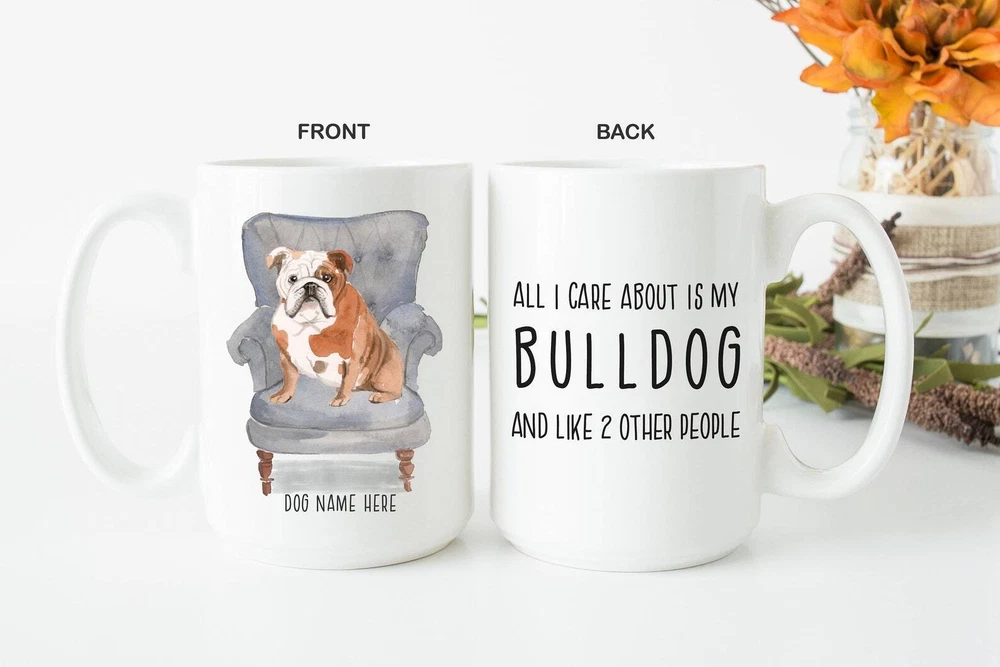 Personalized I Love My Bulldog Coffee Mug Custom Best Dog Lover Birthday Gift Product Details.. This high quality 11oz. ceramic white mug has a premium hard coat that provides crisp and vibrant color reproduction sure to last for years. Perfect for all hot & cold beverages. The highest quality printing possible is used. It will never fade no matter how many times you wash it. Material: 100% Ceramic. Print both sides. Dishwasher and Microwave Safe. High Gloss + Premium White Finish. Printed in the U.S.A. Personalized & Custom. We support personalized and custom mug to add custom, when placing an order, you can add notes to the "order note" in shipping address section. Also you can contact us directly via message. Shipping Info. Ready to ship in 1 to 2 business days, All products are made-to-order and proudly printed in the United States. Shipped by USPS and DHL, You will receive your order in 5-7 days. Replace & Refund. All products are defective during shipping broken, chipped will be replaced free of charge. You are not satisfied with the product, we will refund 100% money to you. If any other issues arise, please do not hesitate to message, we would be more than happy to assist you.