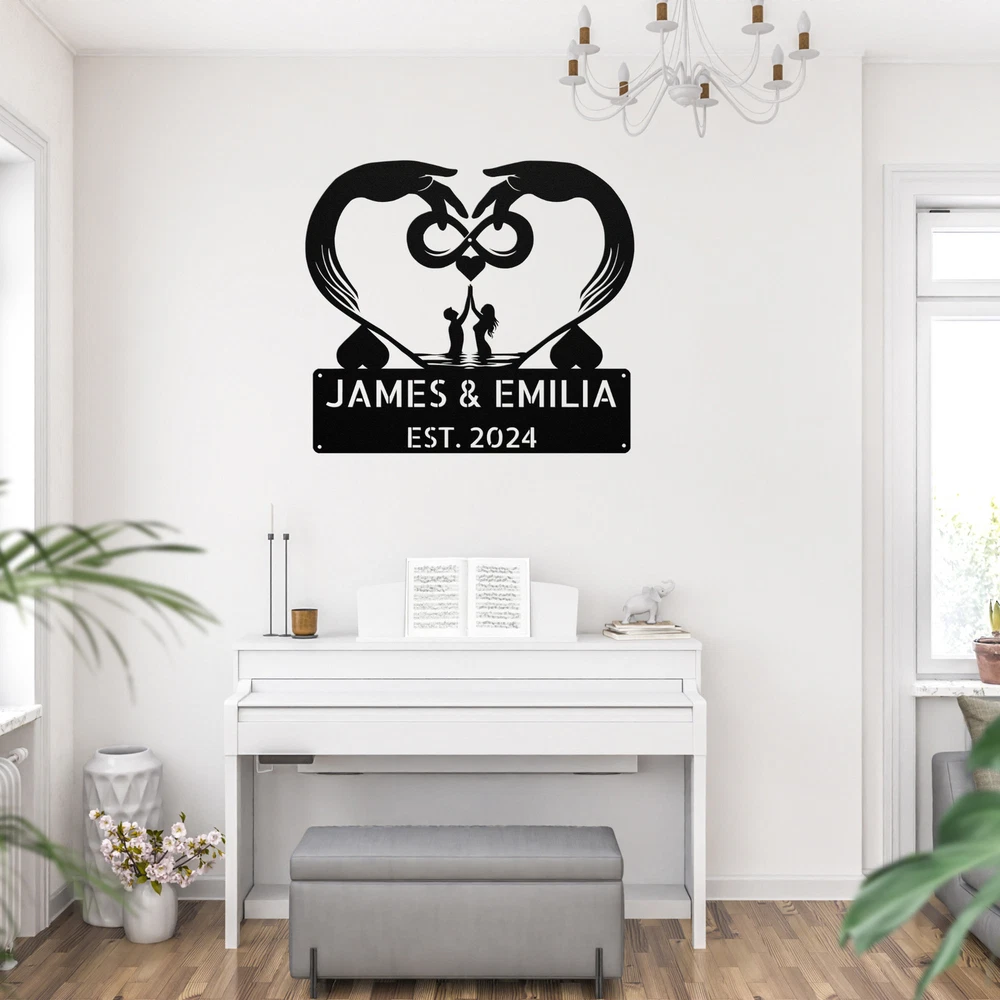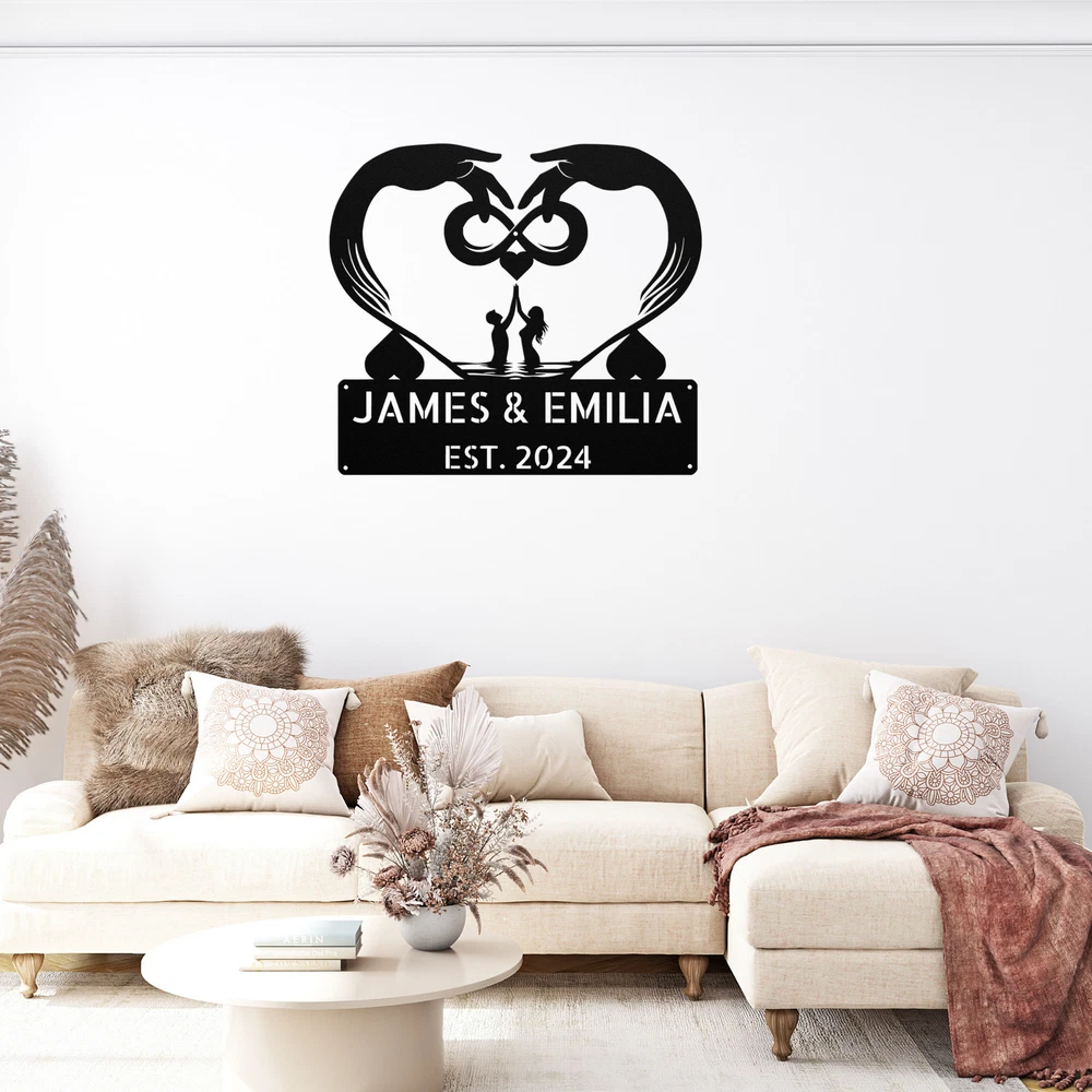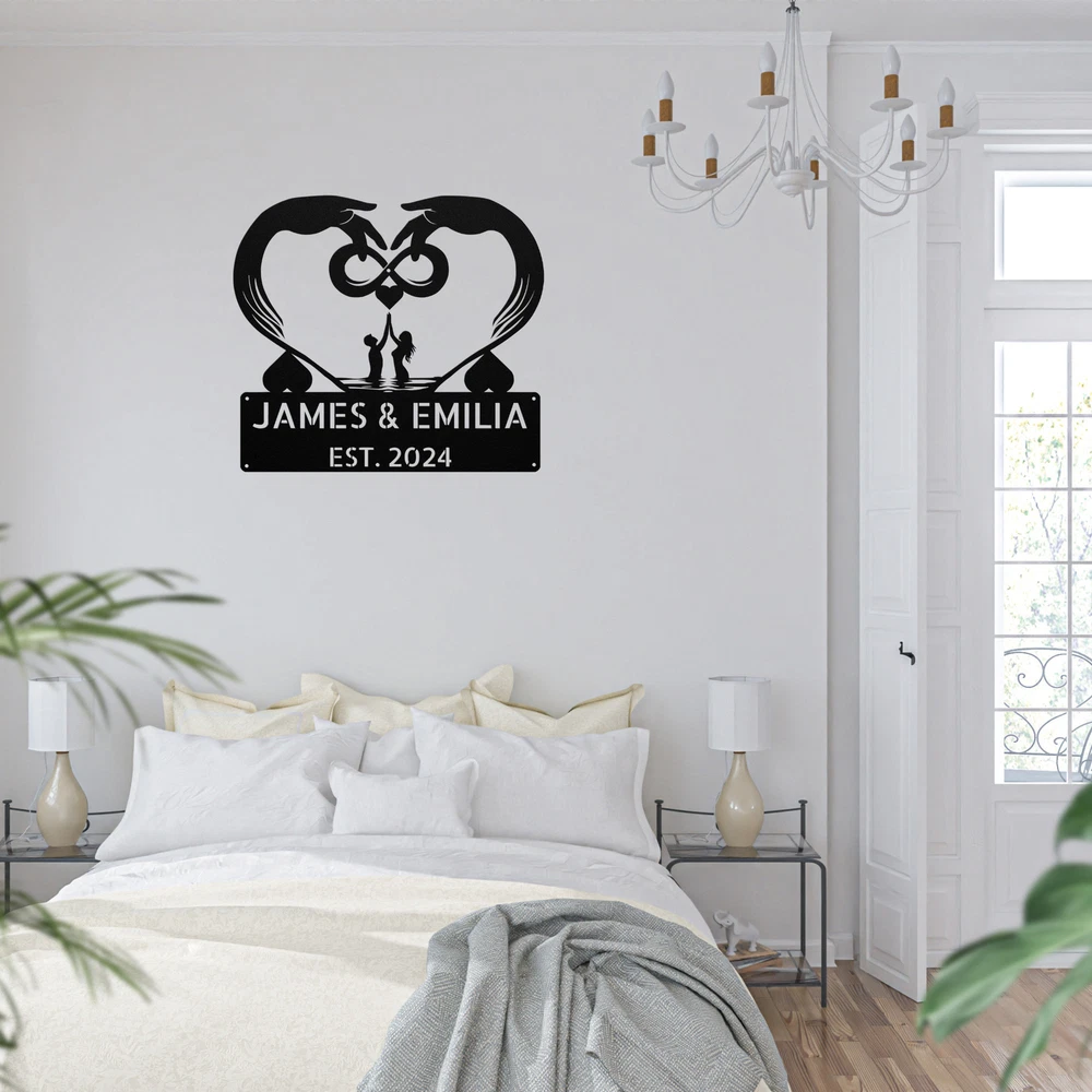 Product Description Personalized Infinite Love Metal Sign Custom Home Decor Gift for Couples Celebrate your everlasting love with our stunning Personalized Infinite Love Metal Sign . This beautiful piece of art is a perfect way to express your commitment and affection for one another. Crafted from 16 gauge high-quality metal , this sign is designed to last. The powder coating ensures it is dust, weather, and water-resistant, making it ideal for both indoor and outdoor use. Key features include: Customizable Design: Personalize it with names, initials, or a special date for a unique touch. Durable Material: Made from sturdy metal to withstand the test of time. Perfect Gift Idea: An excellent choice for Christmas, anniversaries, weddings, or any special occasion. Versatile Decoration: Great for enhancing your home, office, or outdoor space. The Personalized Infinite Love Metal Sign is not just a decoration; it’s a heartfelt symbol of your love story. Order yours today to create a lasting reminder of your infinite bond! Service and Color Choice Our metal signs are designed to be personalized just for you, making them the perfect addition to any space! The default color for our signs is Black , but we also offer a variety of beautiful options including Copper, Gold, White, and Silver . After placing your order, simply contact us with your preferred color choice, and we'll ensure your sign is exactly how you envision it. Let’s create something special together!