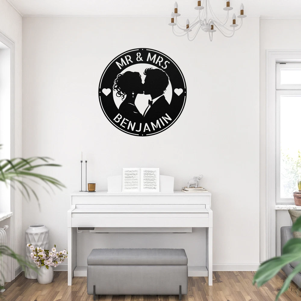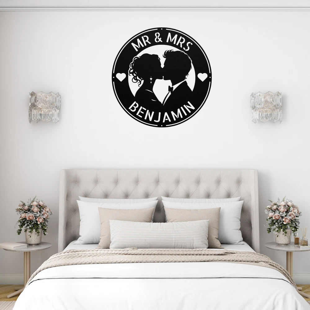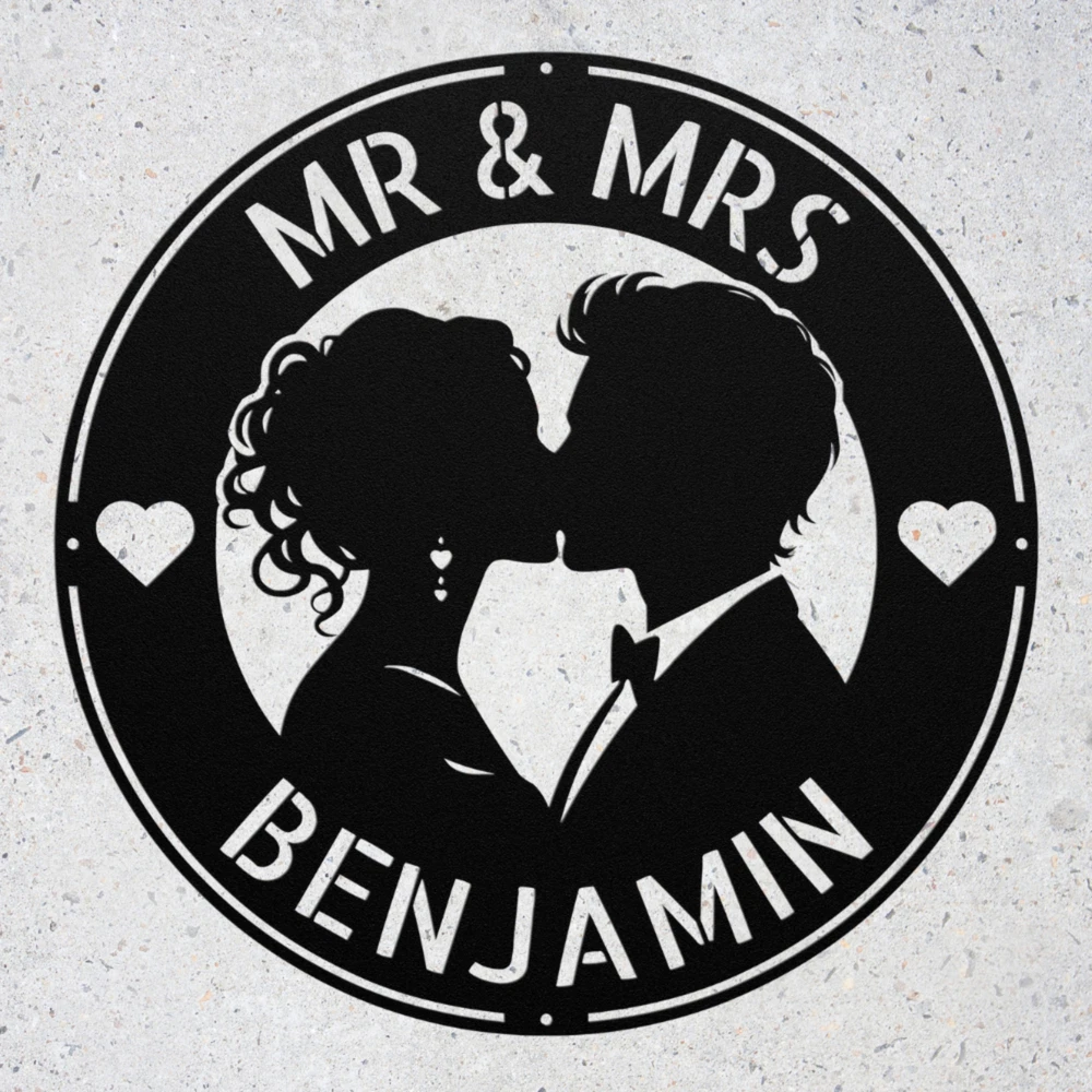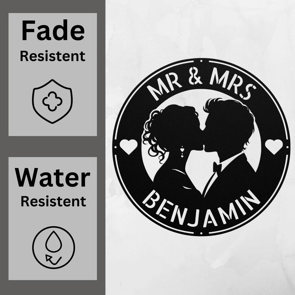 Product Description Personalized Kissing Couple Metal Sign Custom Wall Art Decor Gift for Couples Celebrate love with our Personalized Kissing Couple Metal Sign ! This custom wall art decor is perfect for couples, adding a romantic touch to your home, office, or outdoor space. Made from high-quality 16-gauge metal, this sign features a durable powder coating that protects it from dust, weather, and water, ensuring it remains beautiful both indoors and outdoors. Looking for the perfect gift? This personalized metal sign is a wonderful choice for Christmas, birthdays, anniversaries, or any special occasion. It’s a heartfelt way to honor your relationship and create a warm, inviting atmosphere. Key Features: Customizable Design : Personalize the sign with your names or a special date. Durable Material : Crafted from 16-gauge high-quality metal for long-lasting beauty. Weather-Resistant : Powder-coated finish protects against dust, rain, and rust. Versatile Decor : Suitable for both indoor and outdoor display. Great Gift Idea : A thoughtful present for any couple in love. Showcase your love story or surprise a loved one with this beautiful metal sign. Order yours today and add a personal touch to your decor! Service and Color Choice Our metal signs are designed to be personalized just for you, making them the perfect addition to any space! The default color for our signs is Black , but we also offer a variety of beautiful options including Copper, Gold, White, and Silver . After placing your order, simply contact us with your preferred color choice, and we'll ensure your sign is exactly how you envision it. Let’s create something special together!