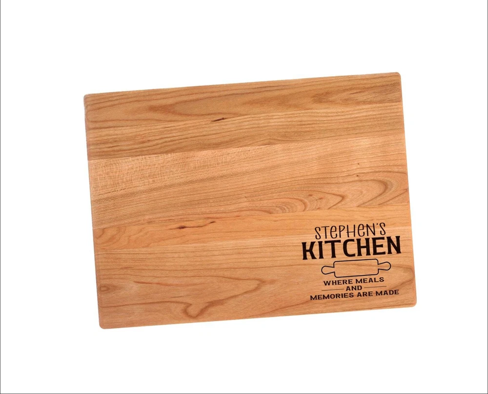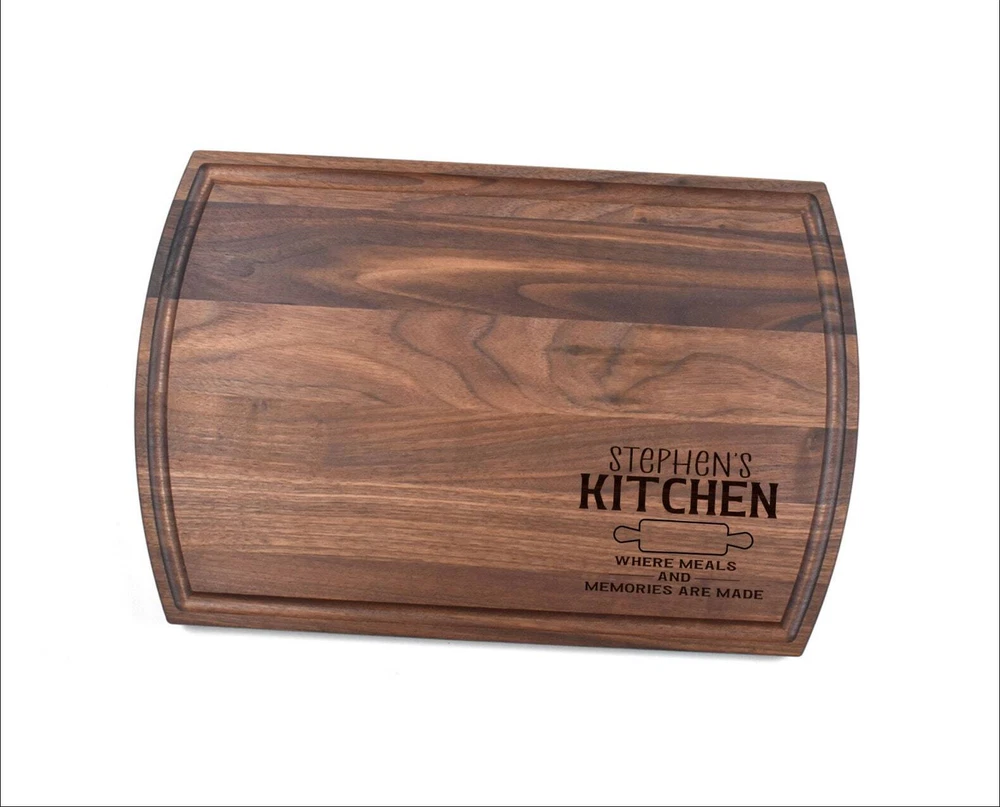 Design: Personalized Kitchen Where Meals And Memories Are Made Cutting Board or Charcuterie Serving Tray All items ship via USPS - please make sure your address is correct :-) Whether used as a charcuterie serving tray for snacks or cutting board, our bamboo, walnut and cherry custom boards are the perfect addition for the home and make the perfect gift for your loved one celebrating a birthday, anniversary, new home, wedding, etc! *** FEATURES *** • SIZES: We have multiple styles and sizes available. To see our current sizes available, click the drop-down menu. The photo slide contains a photo showing each side by side. Please note, the board with the juice groove only has the groove on the front side of the board. • THICKNESS: Bamboo Boards - Approximately 1/2" Thick; Walnut & Cherry Boards - Approximately 3/4” Thick • UNIQUE: Every board is unique with the grain and coloring varying throughout - no board is the same! • CARE INSTRUCTIONS: Hand wash only with warm water. Do not soak. Please apply mineral oil throughout the board’s life. • PERSONALIZATION/CUSTIMIZATION: Do you want the text placed differently on the board? Please don’t hesitate to contact us. All personalization notes can be entered in the personalization box when checking out. • SHIPPING: All cutting boards ship within 2 to 5 business days. • WHOLESALE ORDERS: Please don’t hesitate to contact us for information about wholesale orders. Processing times for larger orders may change. • NOTE: Colors can vary a bit on different monitors and screens. Any props included in photos are not included. Please be sure to double-check your address to make sure it is accurate for USPS delivery. If a package is returned to us due to an invalid address, the buyer is responsible for all additional shipping charges. We appreciate you supporting small business – best wishes! For items ordered with simple edits, we do not send proofs since the layout doesn't change from the example(s). However, in the event there are requests that change the layout from the example(s), we do send proofs for approval before making the product. If you'd like a proof before we make the product, please note so in the personalization box.