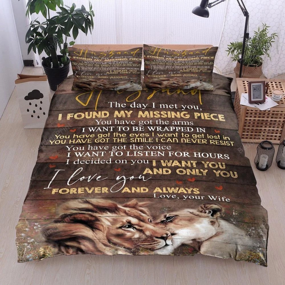 Personalized Lion To Husband From Wife I Want You Quilt Duvet Cover Set Size - Single: 1 x Quilt Cover (145*210cm) 1 x Pillowcases (50*75cm) Set DOES NOT include any INSIDE FILLERS AND ACCESSORIES. Size - Double: 1 x Quilt Cover (180*210cm) 2 x Pillowcases (50*75cm) Set DOES NOT include any INSIDE FILLERS AND ACCESSORIES. Size - Queen: 1 x Quilt Cover (210*210cm) 2 x Pillowcases (50*75cm) Set DOES NOT include any INSIDE FILLERS AND ACCESSORIES. Size - King: 1 x Quilt Cover (220*240cm) 2 x Pillowcases (50*75cm) Set DOES NOT include any INSIDE FILLERS AND ACCESSORIES. Size - Super King: 1 x Quilt Cover (240*270cm) 2 x Pillowcases (50*75cm) Set DOES NOT include any INSIDE FILLERS AND ACCESSORIES. Features: Function: Decorate Type: Duvet Cover Set Material: Polyester Model: Bedding Cover Set Shape: Rectangular Department: Adults,Baby,Children,Teens Character: Bedding Cover Set Product Line: Bedding Line Room: Any Room, Basement, Bedroom, Children's Room, Conservatory Care Instructions: Do not bleach Do not tumble dry Line dry without delay Warm machine wash separately before use