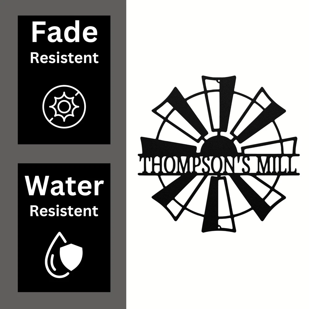 Product Description Personalized Mill Metal Sign Custom Home or Farm Decor Gift for Outdoor Indoor Transform your space with our Personalized Mill Metal Sign . This stunning piece adds a touch of rustic charm to any home or office, making it a perfect addition for those who appreciate craftsmanship and tradition. Crafted from 16 gauge high-quality metal , this sign is built to last. The powder coating ensures it is dust, weather, and water-resistant , allowing you to display it indoors or outdoors without worry. Key features include: Customizable Design: Personalize your sign with names, dates, or special messages for a unique flair. Durable Construction: Made from sturdy metal to guarantee long-lasting quality and appeal. Ideal Gift: Perfect for Christmas, birthdays, or any special occasion for friends or family. Versatile Decor: Great for enhancing your home, office, or garden with a warm and inviting look. Celebrate your love for traditional craftsmanship with the Personalized Mill Metal Sign . It’s not just decor; it’s a piece of art that tells your story! Service and Color Choice Our metal signs are designed to be personalized just for you, making them the perfect addition to any space! The default color for our signs is Black , but we also offer a variety of beautiful options including Copper, Gold, White, and Silver . After placing your order, simply contact us with your preferred color choice, and we'll ensure your sign is exactly how you envision it. Let’s create something special together!