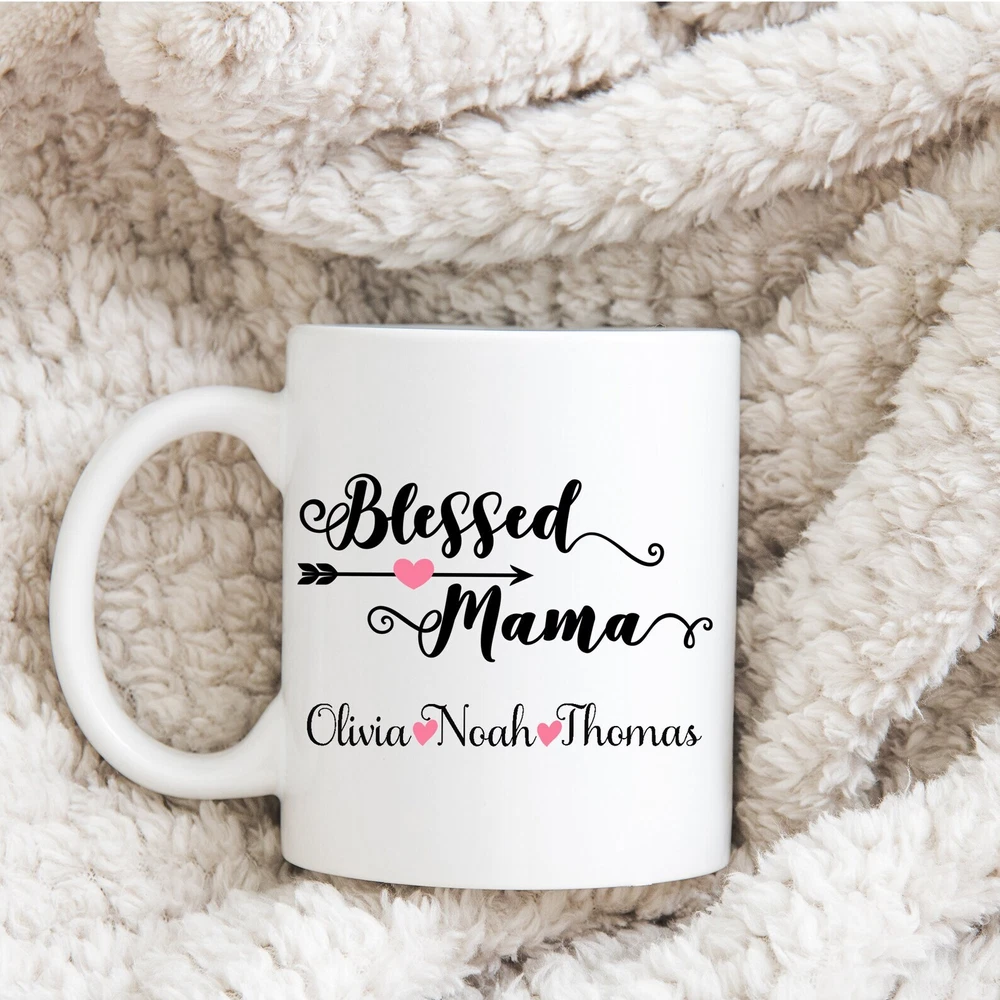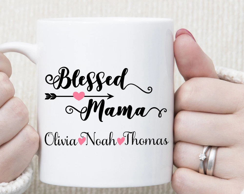 Personalized Mothers Day Mug Mothers Day Gift Mom Gift Blessed Mama Mug Mother Product Details.. This high quality 11oz. ceramic white mug has a premium hard coat that provides crisp and vibrant color reproduction sure to last for years. Perfect for all hot & cold beverages. The highest quality printing possible is used. It will never fade no matter how many times you wash it. Material: 100% Ceramic. Print both sides. Dishwasher and Microwave Safe. High Gloss + Premium White Finish. Printed in the U.S.A. Personalized & Custom. We support personalized and custom mug to add custom, when placing an order, you can add notes to the "order note" in shipping address section. Also you can contact us directly via message. Shipping Info. Ready to ship in 1 to 2 business days, All products are made-to-order and proudly printed in the United States. Shipped by USPS and DHL, You will receive your order in 5-7 days. Replace & Refund. All products are defective during shipping broken, chipped will be replaced free of charge. You are not satisfied with the product, we will refund 100% money to you. If any other issues arise, please do not hesitate to message, we would be more than happy to assist you.
