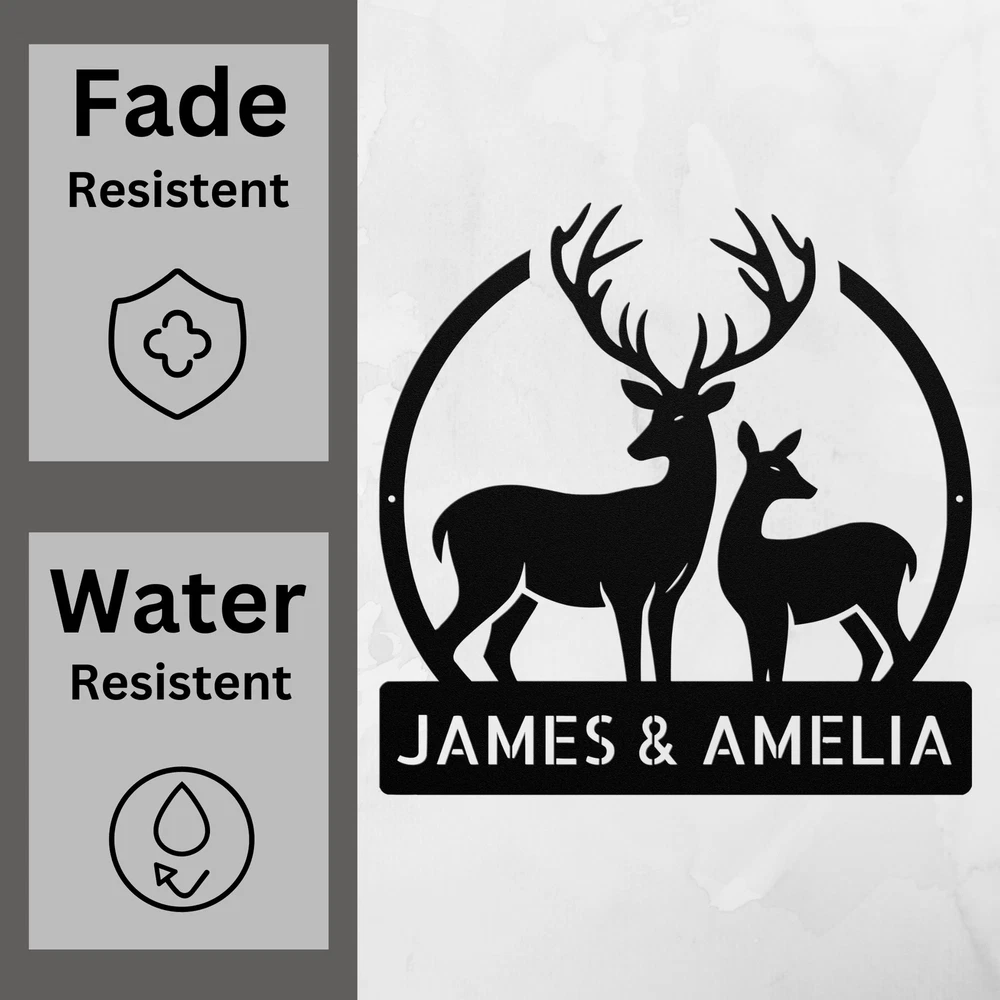 Product Description Personalized Mr Mrs Deer Metal Sign Custom Home Decor Gift for Couples Celebrate love and togetherness with our beautiful Personalized Mr Mrs Deer Metal Sign . This charming sign is perfect for couples who appreciate nature and want to add a personal touch to their home decor. Made from 16 gauge high-quality metal , this sign is both durable and stylish. The powder coating ensures it is dust, weather, and water-resistant, making it suitable for indoor or outdoor display. Key features include: Customizable Design: Personalize it with names or initials to make it uniquely yours. Durable Construction: Crafted from sturdy metal for long-lasting beauty. Great Gift Idea: Perfect for Christmas, weddings, anniversaries, or any special occasion. Versatile Home Decor: Ideal for hanging in your living room, bedroom, or even a rustic cabin. The Personalized Mr Mrs Deer Metal Sign is more than just decoration; it’s a symbol of your love and shared adventures. Order yours today and bring a touch of nature and personalization into your home! Service and Color Choice Our metal signs are designed to be personalized just for you, making them the perfect addition to any space! The default color for our signs is Black , but we also offer a variety of beautiful options including Copper, Gold, White, and Silver . After placing your order, simply contact us with your preferred color choice, and we'll ensure your sign is exactly how you envision it. Let’s create something special together!