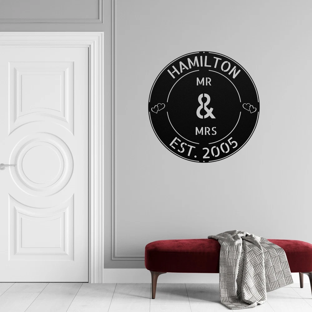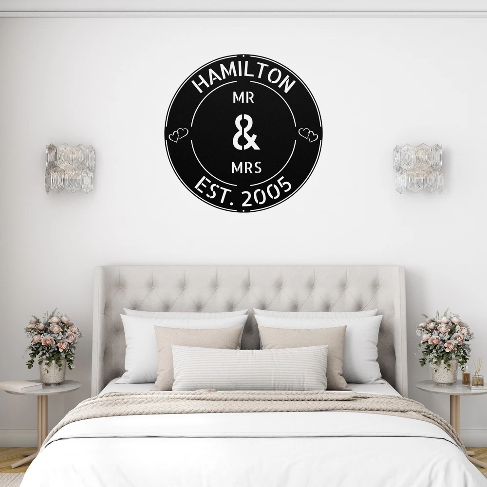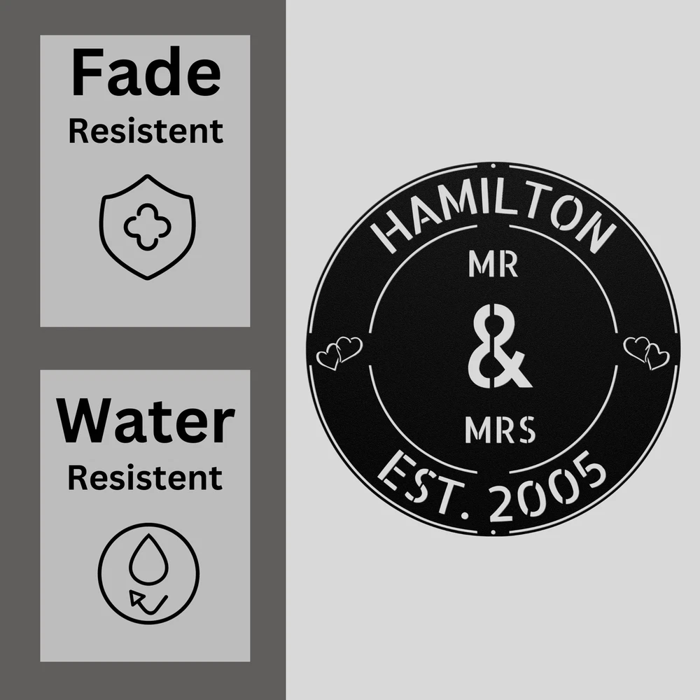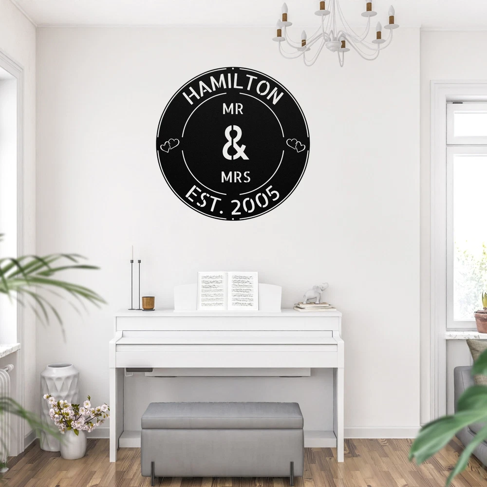 Product Description Personalized Mr and Mrs Metal Sign Custom Wedding Decor Perfect Gift for Couples Celebrate love and unity with our Personalized Mr and Mrs Metal Sign ! This elegant sign is perfect for newlyweds or as a beautiful addition to your own home decor. Made from 16 gauge high-quality metal , this sign is designed to last. With a powder coating , it is dust, weather, and water-resistant, making it ideal for both indoor and outdoor display. Key features include: Customizable Design: Personalize your sign with names or initials for a unique touch. Durable Material: Crafted from sturdy metal to ensure lasting beauty. Ideal Gift: Perfect for weddings, anniversaries, Christmas, or any special occasion. Versatile Decor: A lovely addition to any home, office, or wedding venue. Make your space feel special with the Personalized Mr and Mrs Metal Sign ! Order yours today and celebrate your love story in style! Service and Color Choice Our metal signs are designed to be personalized just for you, making them the perfect addition to any space! The default color for our signs is Black , but we also offer a variety of beautiful options including Copper, Gold, White, and Silver . After placing your order, simply contact us with your preferred color choice, and we'll ensure your sign is exactly how you envision it. Let’s create something special together!