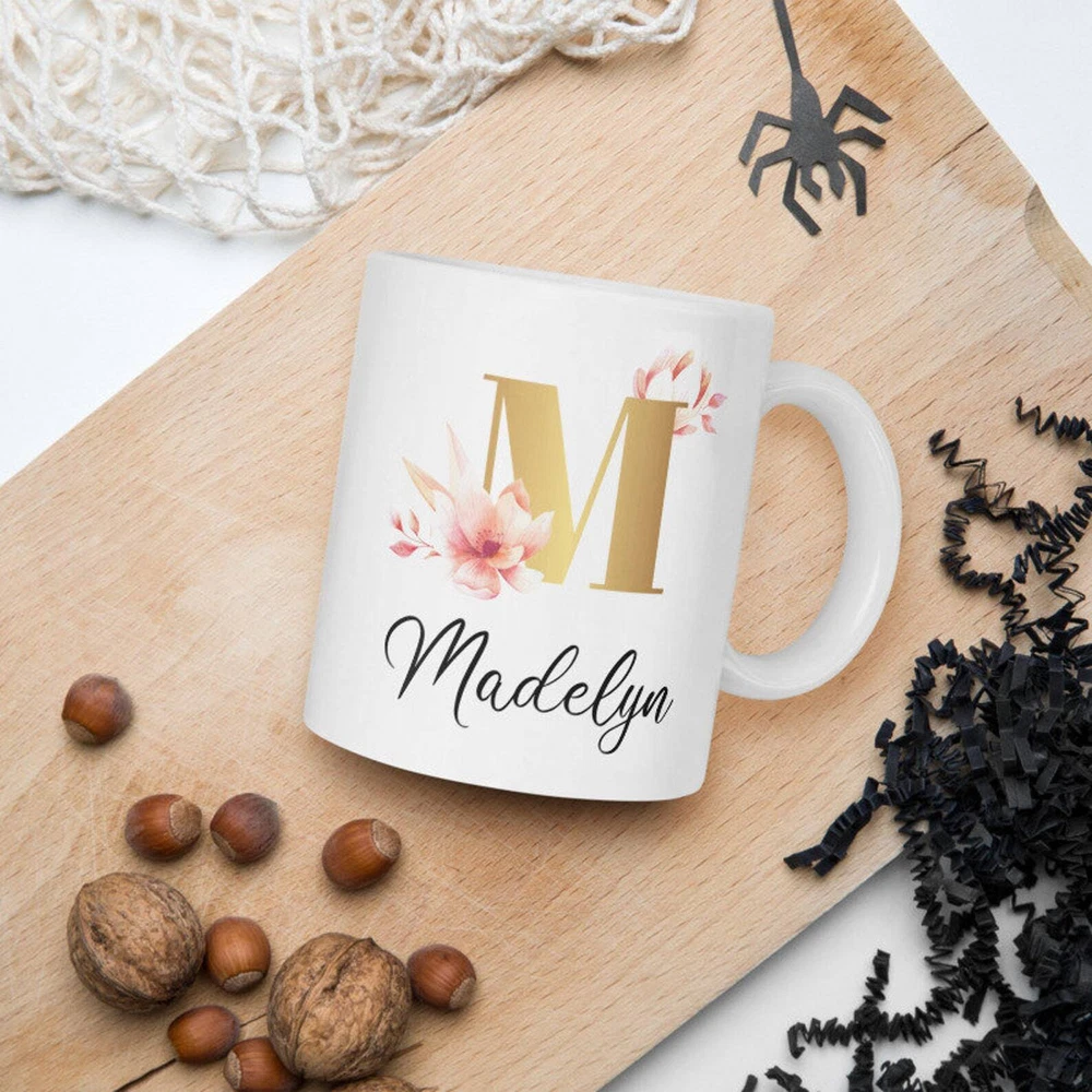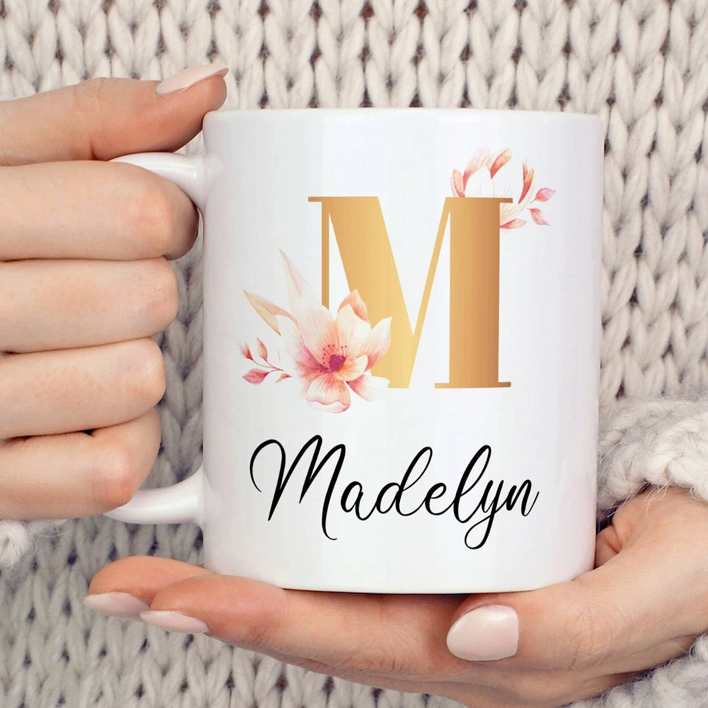 Personalized Name Coffee Mug Monogram Initial Name Coffee Mug Custom Floral Product Details.. This high quality 11oz. ceramic white mug has a premium hard coat that provides crisp and vibrant color reproduction sure to last for years. Perfect for all hot & cold beverages. The highest quality printing possible is used. It will never fade no matter how many times you wash it. Material: 100% Ceramic. Print both sides. Dishwasher and Microwave Safe. High Gloss + Premium White Finish. Printed in the U.S.A. Personalized & Custom. We support personalized and custom mug to add custom, when placing an order, you can add notes to the "order note" in shipping address section. Also you can contact us directly via message. Shipping Info. Ready to ship in 1 to 2 business days, All products are made-to-order and proudly printed in the United States. Shipped by USPS and DHL, You will receive your order in 5-7 days. Replace & Refund. All products are defective during shipping broken, chipped will be replaced free of charge. You are not satisfied with the product, we will refund 100% money to you. If any other issues arise, please do not hesitate to message, we would be more than happy to assist you.