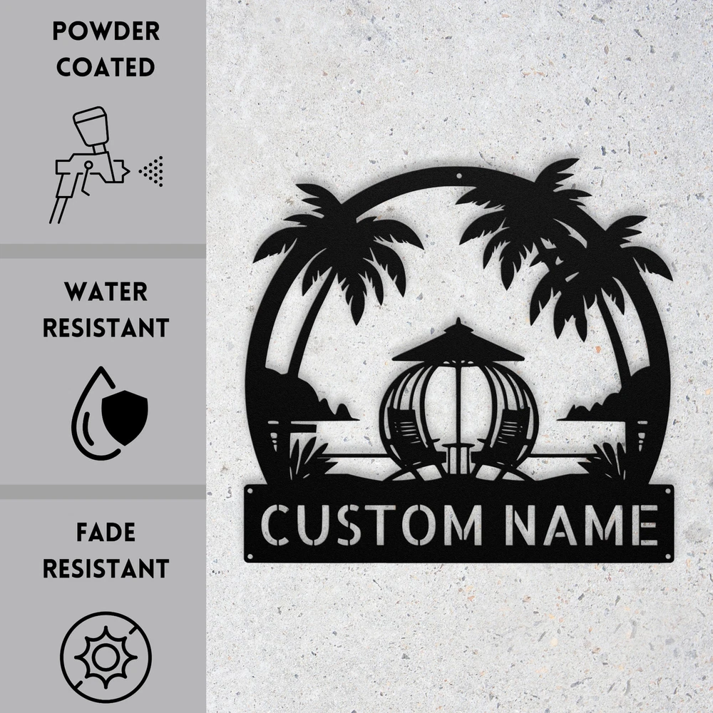 Product Description Personalized Paradise Scene Metal Sign Custom Wall Decor Beach Theme Gift Transform your space with our Personalized Paradise Scene Metal Sign ! This custom wall decor captures the essence of beach life, making it the perfect addition to any coastal-themed room. Crafted from high-quality 16-gauge metal, this sign features a durable powder coating that protects it from dust, weather, and water, ensuring it remains beautiful indoors and outdoors. Looking for a unique gift? This personalized metal sign is a wonderful choice for Christmas, birthdays, or any special occasion. It’s also a great way to express your own style in your home or office. Key Features: Customizable Design : Personalize the sign with your name or a special message. Durable Material : Made from 16-gauge high-quality metal for long-lasting use. Weather-Resistant : Powder-coated finish protects against dust, rain, and rust. Versatile Decor : Perfect for both indoor and outdoor display. Great Gift Idea : A thoughtful present for beach lovers and ocean enthusiasts. Bring a touch of paradise into your life or surprise a friend with this beautiful metal sign. Order yours today and add a personal touch to your decor! Service and Color Choice Our metal signs are designed to be personalized just for you, making them the perfect addition to any space! The default color for our signs is Black , but we also offer a variety of beautiful options including Copper, Gold, White, and Silver . After placing your order, simply contact us with your preferred color choice, and we'll ensure your sign is exactly how you envision it. Let’s create something special together!