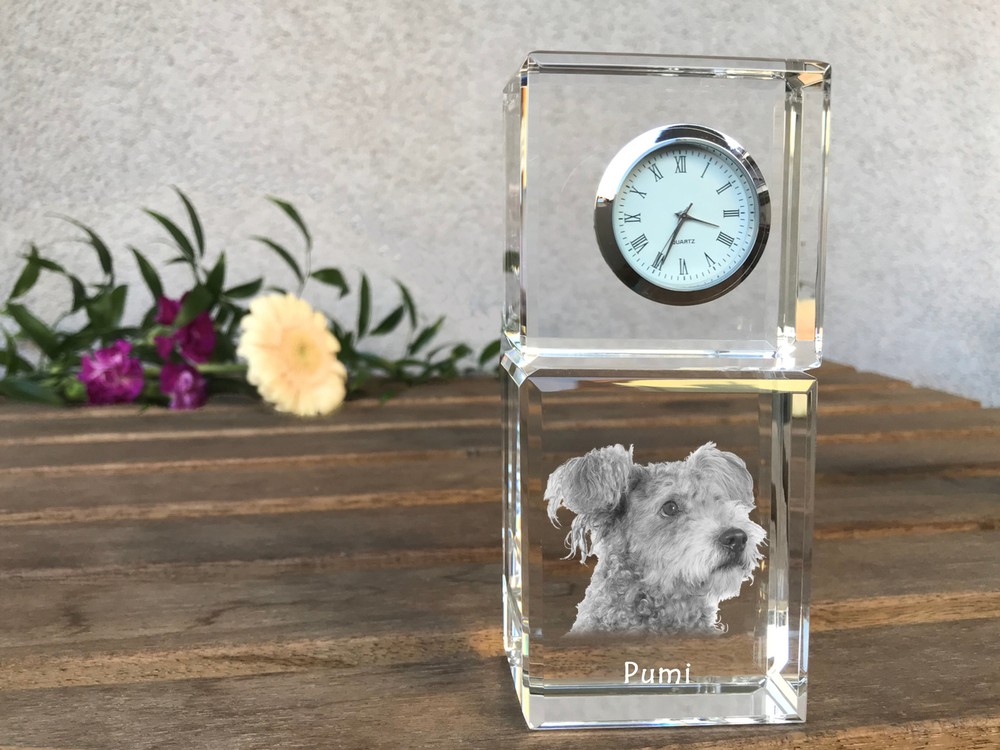 Pumi - Crystal Clock With Photo, Dog Image In Crystal, Personalized Desk The description of this item has been automatically translated. If you have any questions, please feel free to contact us. Pumi - crystal clock with photo, dog image in the crystal, personalized desk clock from Art Dog. If you appreciate personalized decorations for your home, this clock will perfectly complement your collection. The crystal clock can be placed on a shelf, a window ledge or a desk - anywhere it will blend in beautifully, adding some elegance and sophisticated charm. The crystal has an image of an animal engraved on it, which we can replace with your pet's photo. The watch is analogue, with classic hands and dial. A battery is also included. This stylish figurine is not only a functional watch, but also a beautiful keepsake that combines elegance and personal memories. An excellent choice as a gift for various occasions - from birthdays and anniversaries to Christmas gifts and mementos of beloved pets. Crystal dimensions: 14.5x6.5x4 cm Material: optical crystal Pumi - crystal clock with photo, dog image in the crystal, personalized desk clock from Art Dog. If you appreciate personalized decorations for your home, this clock will perfectly complement your collection. The crystal clock can be placed on a shelf, a window ledge or a desk - anywhere it will blend in beautifully, adding some elegance and sophisticated charm. The crystal has an image of an animal engraved on it, which we can replace with your pet's photo. The watch is analogue, with classic hands and dial. A battery is also included. This stylish figurine is not only a functional watch, but also a beautiful keepsake that combines elegance and personal memories. An excellent choice as a gift for various occasions - from birthdays and anniversaries to Christmas gifts and mementos of belo Recommended products Provided by Hovawart - Crystal Clock With Photo, Dog Image In Crystal, Personalized Desk View item Beagle - Crystal Clock With Photo, Dog Image In Crystal, Personalized Desk View item Kuvasz - Crystal Clock With Photo, Dog Image In Crystal, Personalized Desk View item Mudi - Crystal Clock With Photo, Dog Image In Crystal, Personalized Desk View item Puli - Crystal Clock With Photo, Dog Image In Crystal, Personalized Desk View item Shih Tzu - Crystal Clock With Photo, Dog Image In Crystal, Personalized Desk View item Pumi - Glass Clock With Photo, Photo One Dog IN Crystal, Personalized Table View item Affenpinscher - Crystal Clock With Photo, Dog Image In Crystal, Personalized View item Stil Anhänger Produktart Halskette EAN 5055882417953
