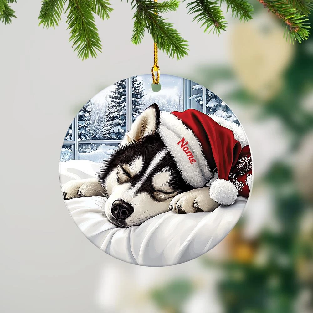 Personalized Siberian Husky Dog Sleeping Christmas Ornament Decor Holiday Gift
