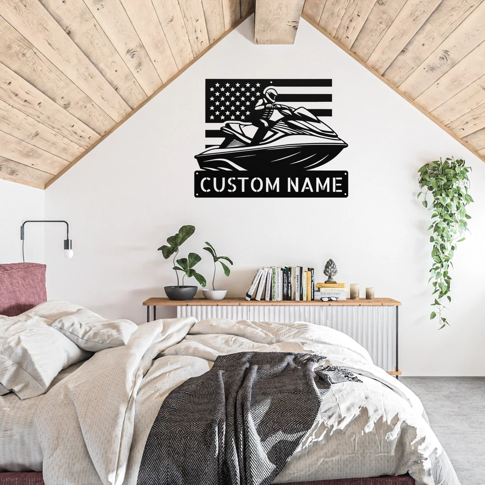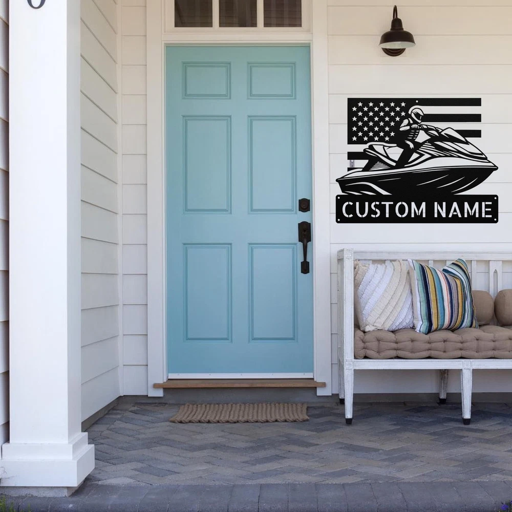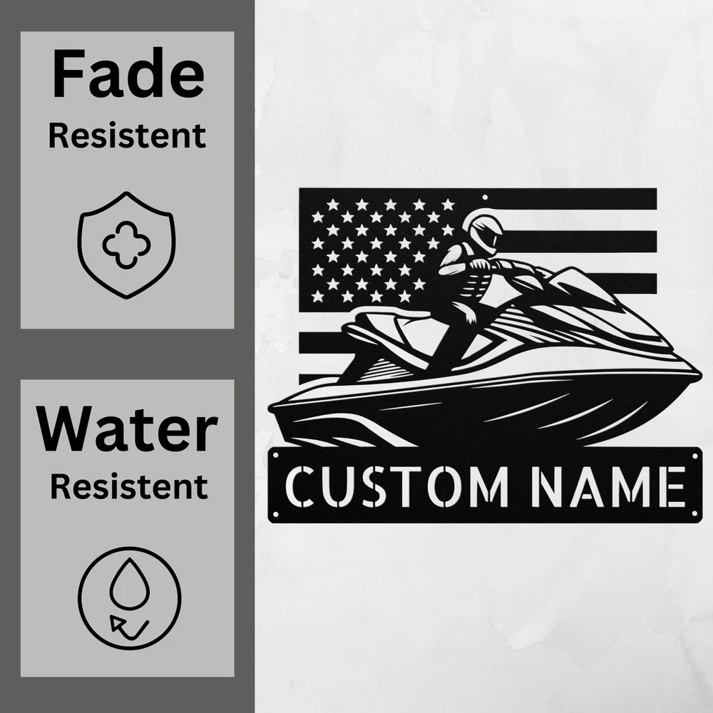 Product Description Personalized US Jet Ski Metal Sign Custom Water Sports Decor Jet Ski Lovers Gift Get ready to ride the waves with our Personalized US Jet Ski Metal Sign ! This eye-catching sign is perfect for anyone who loves water sports and adds a fun touch to your home or office. Made from 16 gauge high-quality metal , this sign is built to last. The powder coating ensures it is dust, weather, and water-resistant , making it suitable for indoor and outdoor use. Key features include: Customizable Design: Add your name, a favorite quote, or a special message to make it uniquely yours. Durable Quality: Designed to withstand the elements while keeping its vibrant colors and style. Great Gift Idea: Perfect for Christmas, birthdays, or any occasion for water sports enthusiasts. Unique Decor: A fantastic way to showcase your passion for jet skiing and water adventures. Celebrate your love for jet skiing with the Personalized US Jet Ski Metal Sign . It’s not just a sign; it’s a piece of art that reflects your adventurous spirit! Service and Color Choice Our metal signs are designed to be personalized just for you, making them the perfect addition to any space! The default color for our signs is Black , but we also offer a variety of beautiful options including Copper, Gold, White, and Silver . After placing your order, simply contact us with your preferred color choice, and we'll ensure your sign is exactly how you envision it. Let’s create something special together!