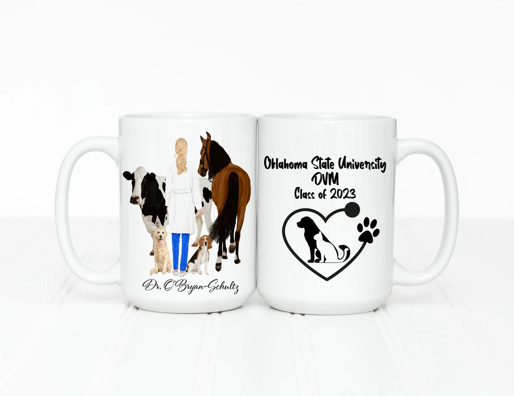 Personalized Veterinarian Mug Graduation Gift Veterinary Graduation Gift Product Details.. This high quality 11oz. ceramic white mug has a premium hard coat that provides crisp and vibrant color reproduction sure to last for years. Perfect for all hot & cold beverages. The highest quality printing possible is used. It will never fade no matter how many times you wash it. Material: 100% Ceramic. Print both sides. Dishwasher and Microwave Safe. High Gloss + Premium White Finish. Printed in the U.S.A. Personalized & Custom. We support personalized and custom mug to add custom, when placing an order, you can add notes to the "order note" in shipping address section. Also you can contact us directly via message. Shipping Info. Ready to ship in 1 to 2 business days, All products are made-to-order and proudly printed in the United States. Shipped by USPS and DHL, You will receive your order in 5-7 days. Replace & Refund. All products are defective during shipping broken, chipped will be replaced free of charge. You are not satisfied with the product, we will refund 100% money to you. If any other issues arise, please do not hesitate to message, we would be more than happy to assist you.