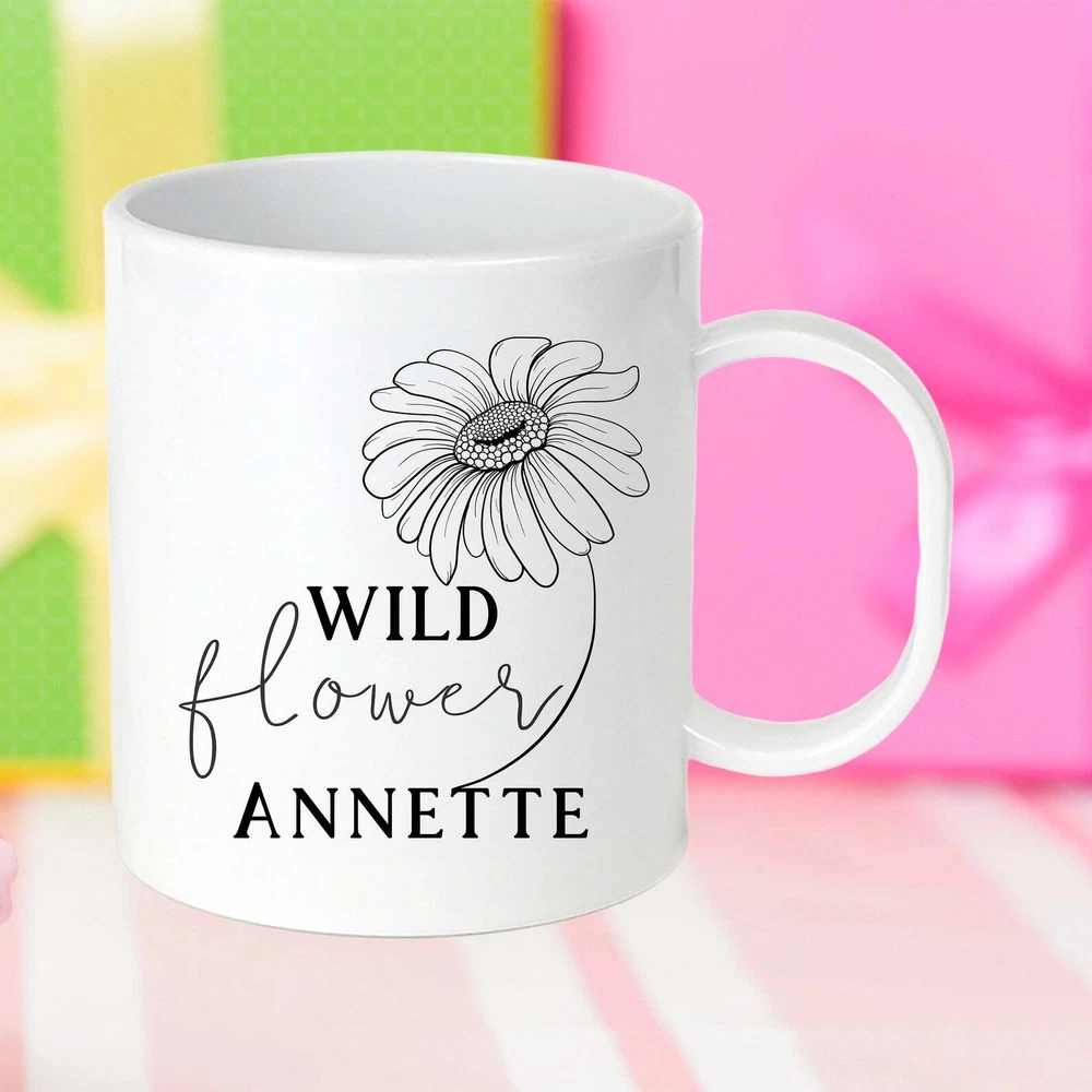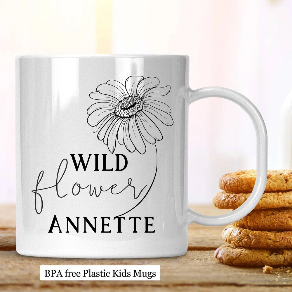 Personalized Wild Flower Kids Mug Custom Wild Flower Mug Kids Gift Custom Kids Product Details.. This high quality 11oz. ceramic white mug has a premium hard coat that provides crisp and vibrant color reproduction sure to last for years. Perfect for all hot & cold beverages. The highest quality printing possible is used. It will never fade no matter how many times you wash it. Material: 100% Ceramic. Print both sides. Dishwasher and Microwave Safe. High Gloss + Premium White Finish. Printed in the U.S.A. Personalized & Custom. We support personalized and custom mug to add custom, when placing an order, you can add notes to the "order note" in shipping address section. Also you can contact us directly via message. Shipping Info. Ready to ship in 1 to 2 business days, All products are made-to-order and proudly printed in the United States. Shipped by USPS and DHL, You will receive your order in 5-7 days. Replace & Refund. All products are defective during shipping broken, chipped will be replaced free of charge. You are not satisfied with the product, we will refund 100% money to you. If any other issues arise, please do not hesitate to message, we would be more than happy to assist you.