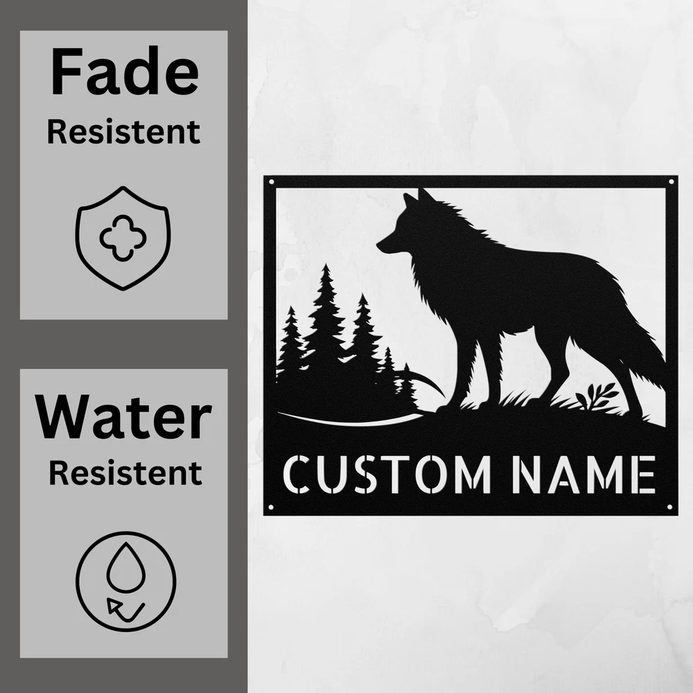 Product Description Personalized Wild Wolf Metal Sign Custom Home Decor Gift for Animal Lovers Bring the wild spirit of nature into your home with our Personalized Wild Wolf Metal Sign . This striking sign is perfect for wolf lovers and those who appreciate the beauty of wildlife. Crafted from 16 gauge high-quality metal , this sign is built to last. Its powder coating ensures it is dust, weather, and water resistant, making it suitable for both indoor and outdoor display. Key features include: Customizable Design: Personalize your sign with names, dates, or special messages to make it truly yours. Durable and Weather Resistant: Ideal for use in any environment, whether hanging in your home, garden, or office. Perfect Gift Idea: A thoughtful present for Christmas, birthdays, or any occasion for the animal lover in your life. Eye-Catching Decoration: This sign adds a unique touch to any room or outdoor space, showcasing your love for wildlife. Elevate your decor with the Personalized Wild Wolf Metal Sign . Order yours today to create a one-of-a-kind piece that reflects your passion for the wild! Service and Color Choice Our metal signs are designed to be personalized just for you, making them the perfect addition to any space! The default color for our signs is Black , but we also offer a variety of beautiful options including Copper, Gold, White, and Silver . After placing your order, simply contact us with your preferred color choice, and we'll ensure your sign is exactly how you envision it. Let’s create something special together!