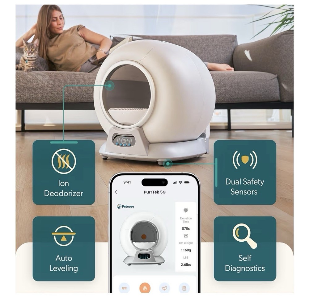 The Petcove Automatic Self-Cleaning Litter Box is a convenient and modern solution for cat owners. With its brand, Petcove, this litter box is designed to automatically clean itself, reducing maintenance time and odor. This product is of great value for pet owners looking for a hassle-free way to manage their cat's litter needs. This item is being sold as OPEN BOX – NEVER USED. It was opened only for inspection and verification. The unit is in excellent condition and fully functional. Designed to keep your home cleaner and reduce odors, this smart litter box is perfect for busy cat owners. ⸻ Key Features 🐾 Automatic self-cleaning system – no daily scooping 🐾 Helps reduce litter odors 🐾 Spacious and comfortable for most cats 🐾 Modern, sleek design 🐾 Easy setup and low maintenance ⸻ Condition Details (Please Read) • Open box item • Never used • Fully inspected and tested • No pet waste exposure • May show minimal signs from handling or storage