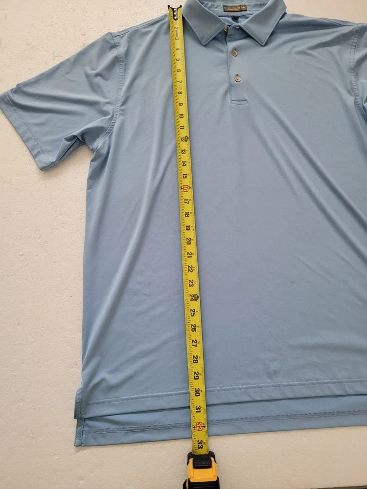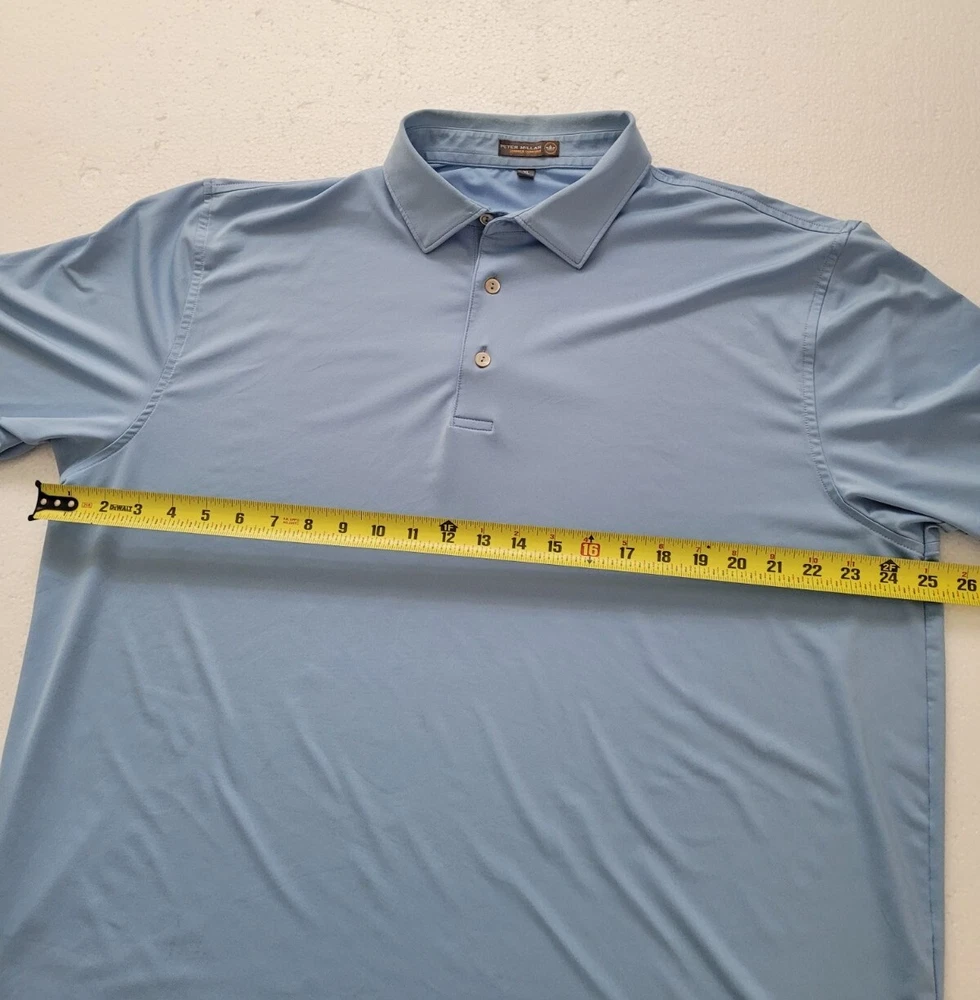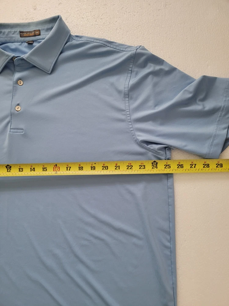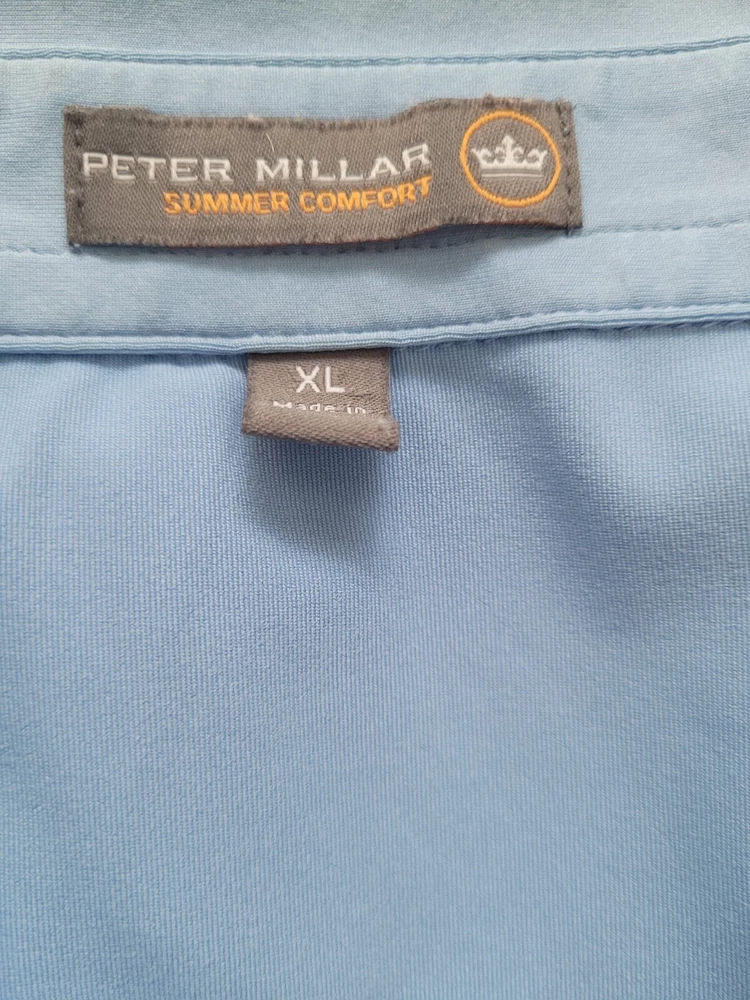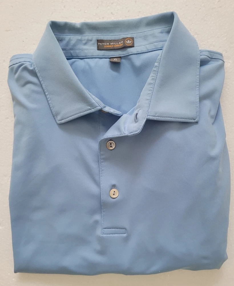 Shirt Length: 30 in Material: Polyester, Spandex Country/Region of Manufacture: Vietnam Model: Peter Millar Crown Sport Performace Character: . Neckline: Collared Handmade: No Brand: Peter Millar Personalize: No Collar Style: Spread Closure: Button Fabric Type: Jersey Theme: Sports, active, wicking, E4, Premium Features: Breathable, Easy Care, Lightweight, Moisture Wicking, Stretch Fabric Wash: Light Product Line: Peter Millar Summer Comfort Performance/Activity: Golf Type: Polo Fit: Regular Accents: Button, Embroidered, Logo Garment Care: Machine Washable Vintage: No Chest Size: 48 in Size Type: Regular Department: Men Pattern: Solid Occasion: Activewear, Casual, Travel Color: Blue Size: XL Sleeve Length: Short Sleeve Season: Fall, Spring, Summer, Winter
