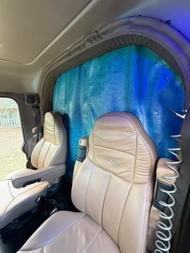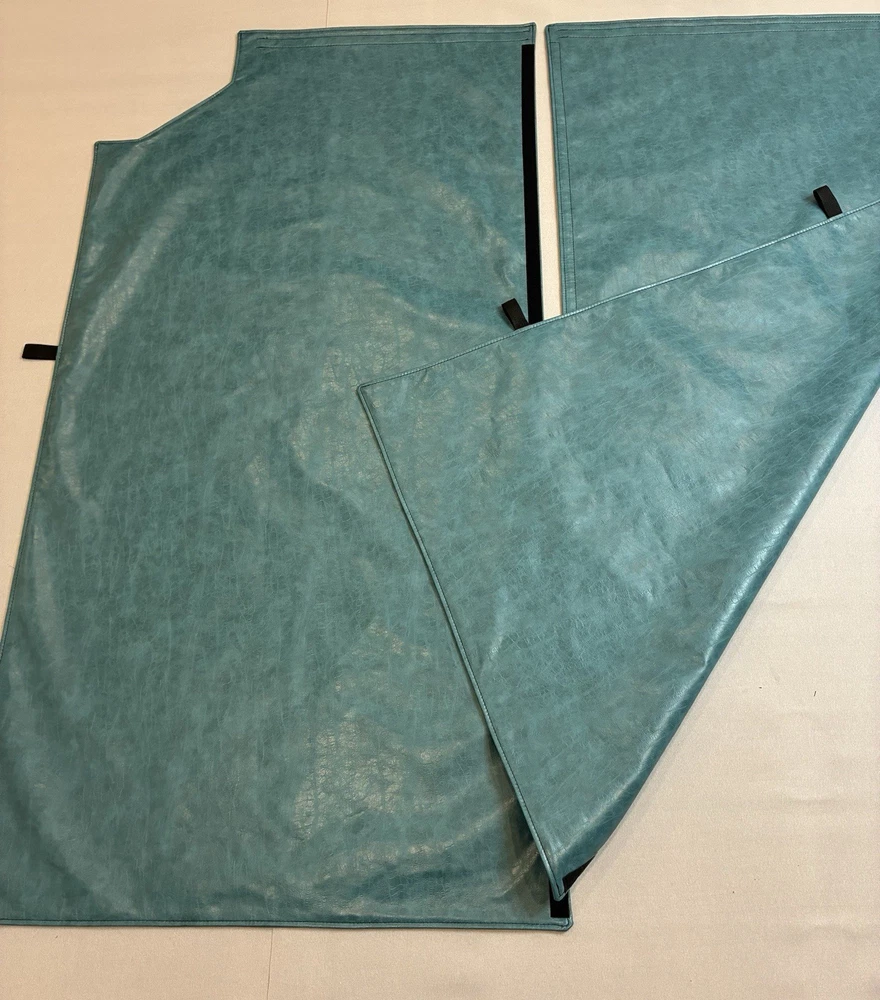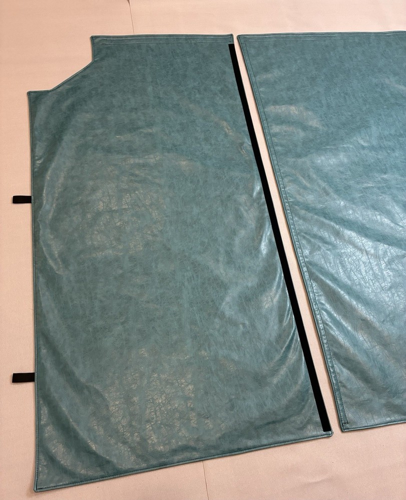 Peterbilt 386 Middle Roof Sleeper Curtains Privacy curtains left and right side Faux leather both sides. Turquoise color NOTE: This curtain does not include side panels that cover the cabinets! This curtain comes in turquoise. Other colors are available upon request , feel free to contact me.