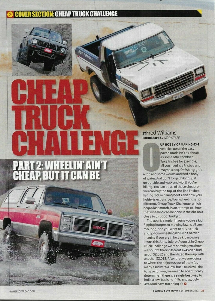 Petersen's 4 Wheel Cheap truck challenge ALSO FEATURED: Dana axle build Jeep hack Alabama wheeling Body lift basics Rust beater
