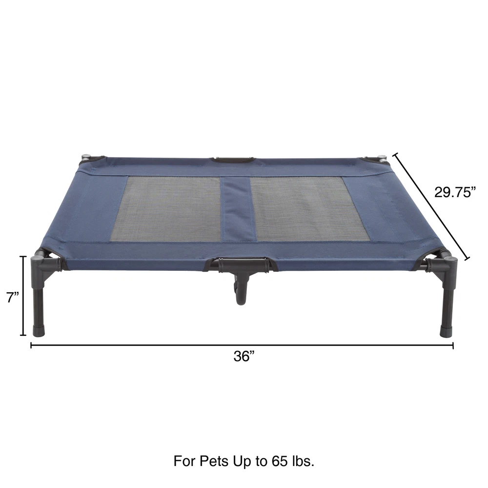 The Elevated Pet Bed by Petmaker is a comfortable and practical sleeping solution for your furry friend! Lightweight and portable with a carrying case included, this raised pet bed is a travel friendly option. Weather resistant and perfect for both indoor and outdoor use, this elevated bed provides better ventilation and body temperature regulation for your pet, helping them stay relaxed and happy even in hot or cold temperatures. Your dog, cat, or small pet will love resting on this cot-style bed!Protects furniture from pet stains, spills,and faux\n Dimensions: 36 x 29.75 \nWater resistant with non slip rubber feet \nRaised Cot 7 Inch high \nHand wash only \nMesh center for ventilation and body temperature regu OpenSky on eBay Our eBay Store About Us Contact Us Petmaker Elevated Dog Cat Bed 36x29 Waterproof Indoor Outdoor Cot with Carry Bag