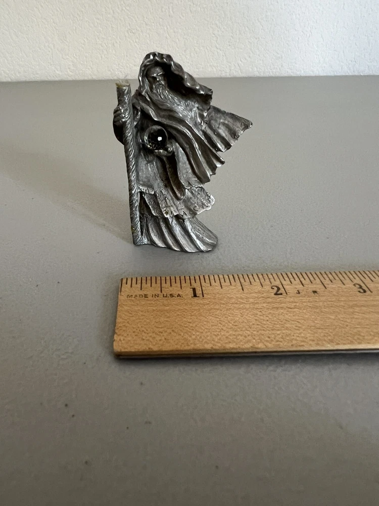 This pewter figurine is perfect for any fan of fantasy, LOTR, or magic. The Wizard Sorcerer Warlock is depicted holding a crystal ball and staff, adding a touch of mystery to any room. The 3D effect of the figurine makes it a unique addition to any collection. Ideal for all occasions, this figurine is a great way to showcase your love for magic and fantasy. Its intricate details and high-quality construction make it a wonderful gift for any fan of the genre. Add it to your collection or display it prominently in any room to create a spellbinding atmosphere.