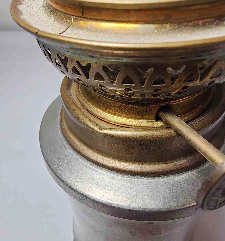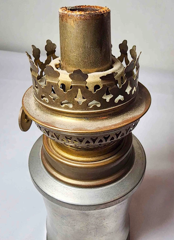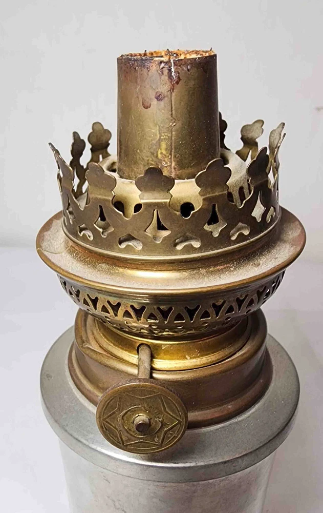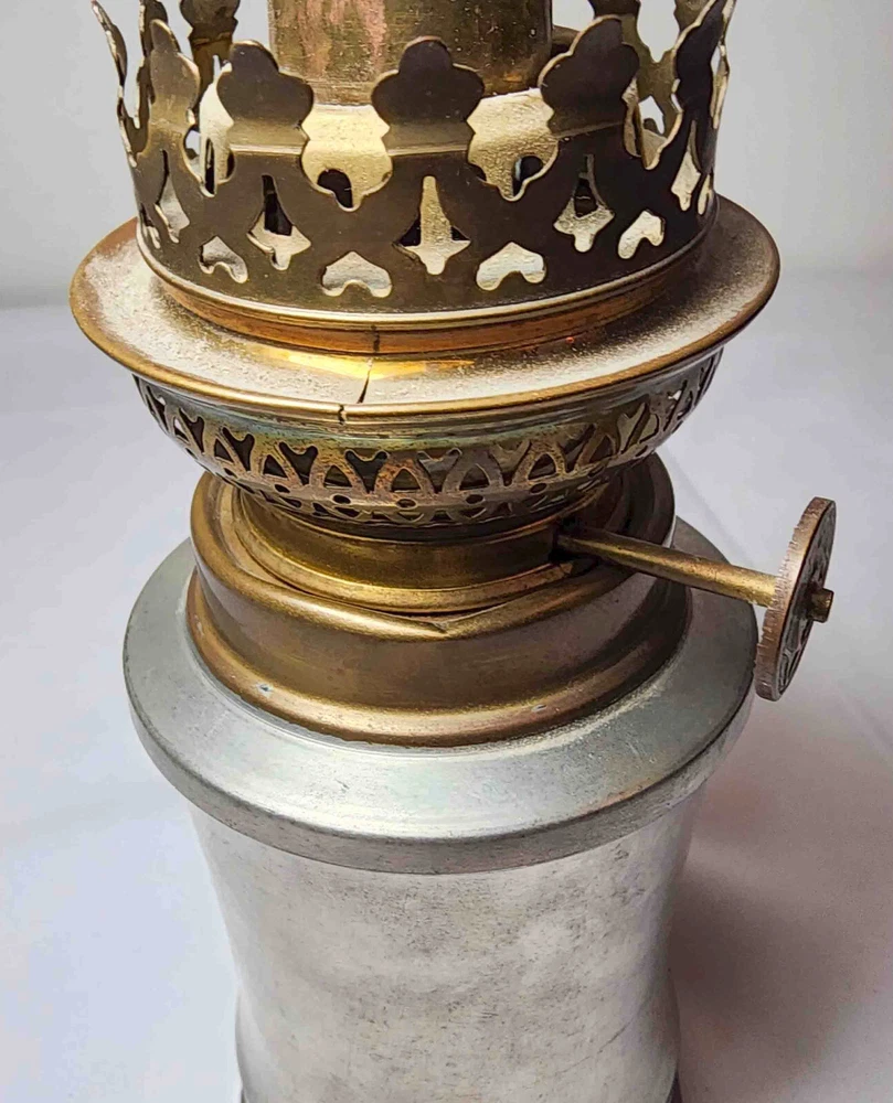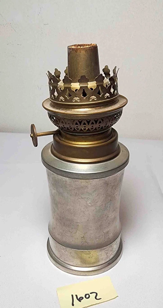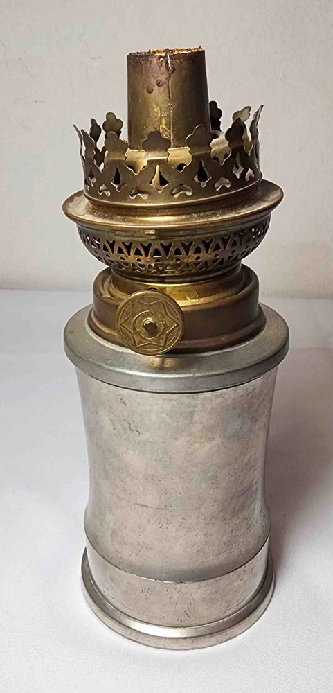 Pewter and brass Oil lamp vintage. T & C White NH 1984