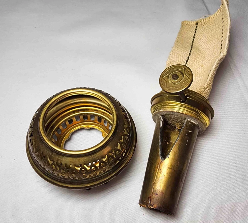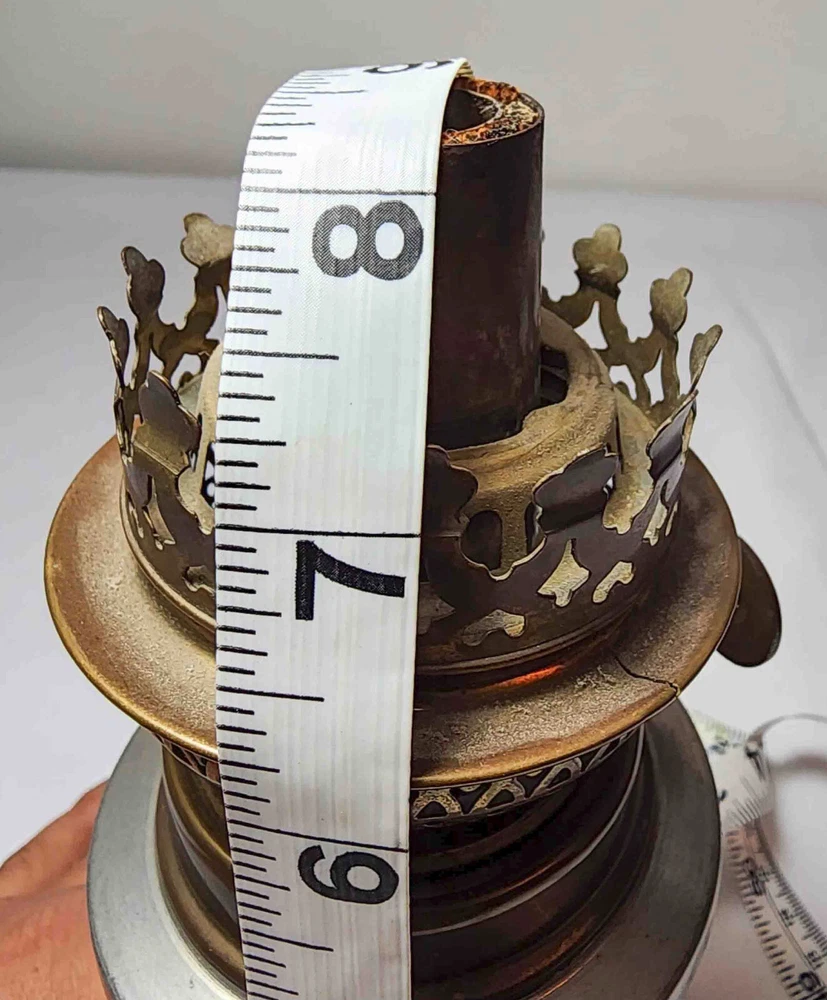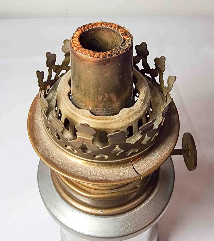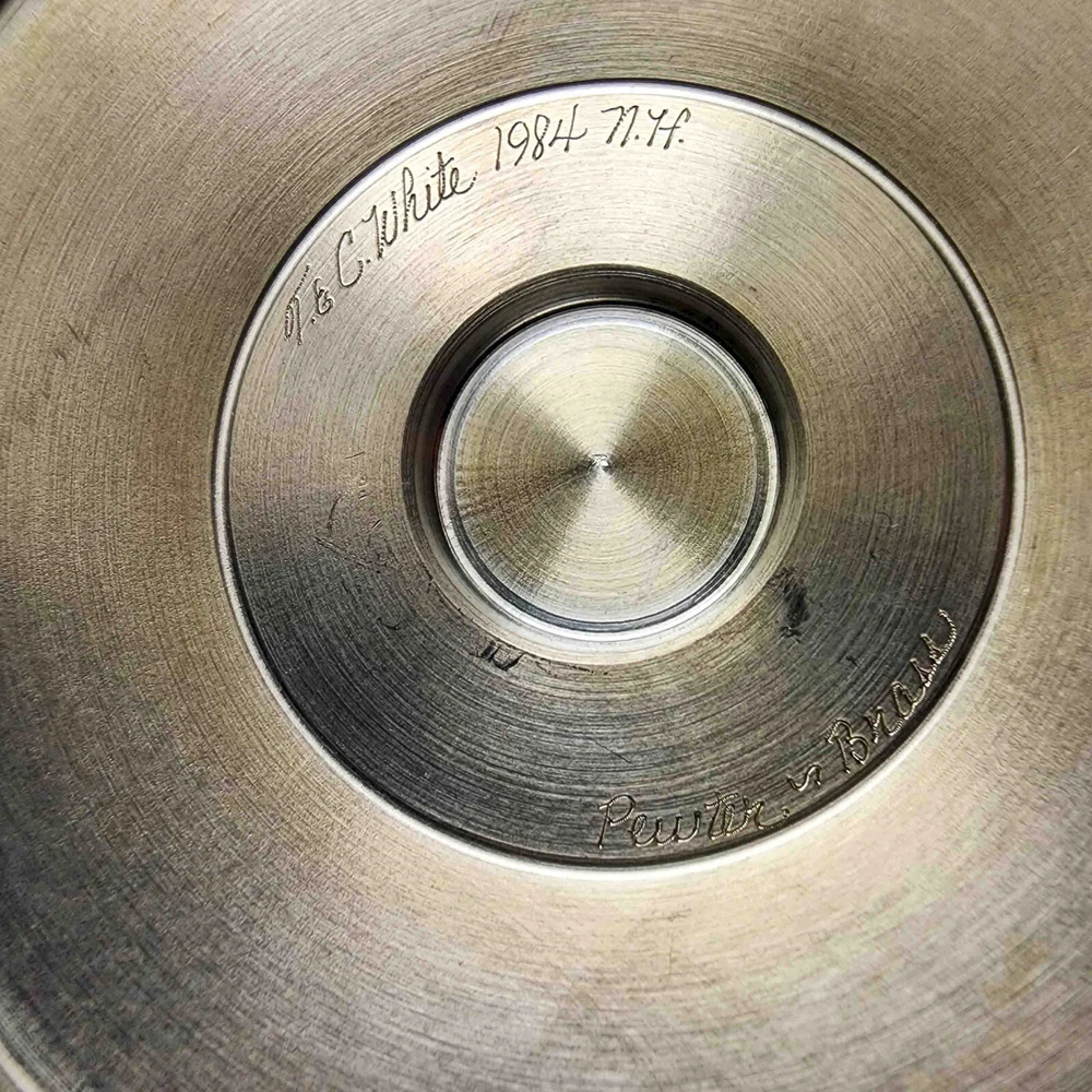 Pewter and brass Oil lamp vintage. T & C White NH 1984