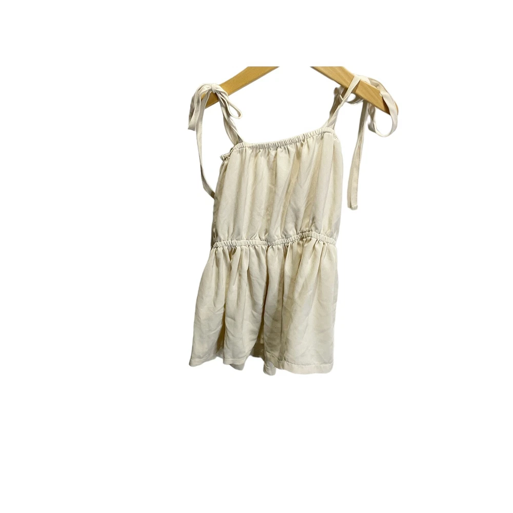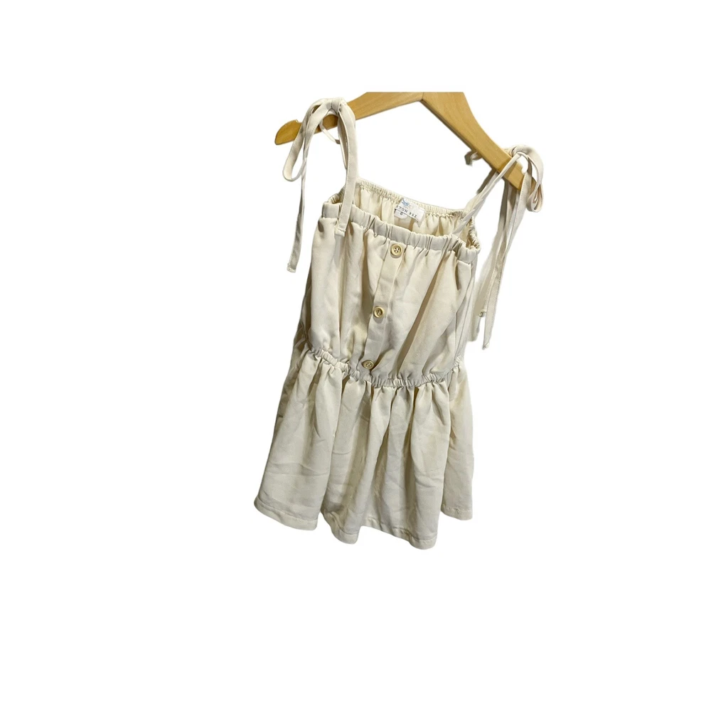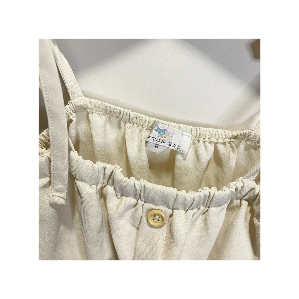 Add a touch of boho chic to your little girl's wardrobe with this Peyton Bre tunic blouse. The solid ivory color and square neckline give it a timeless appeal, while the sleeveless design and tie straps add a fun and playful touch. The button front and accents provide a unique touch that will make your little one stand out from the crowd. This blouse is perfect for any occasion and can be dressed up or down effortlessly. It's available in size 6 and is suitable for girls of all ages. small spot on the front. very. cute and flowy All Measurements Are Approximate Please email us with any questions! ** LIKE THE ITEM BUT NOT THE PRICE, REASONABLE OFFERS ACCEPTED