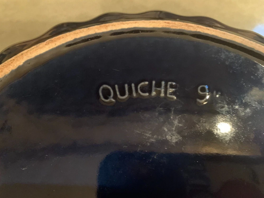 Gorgeous vivid cobalt blue! Offered is a 9" glossy finish quiche/pie/baking dish with crimped edges interior and exterior. This dish is in excellent condition. Please note in the last two photos the process of artisan pottery produces natural ceramic markings, drips. Measures 9" diameter x 2" deep. Fast shipping, quality packed, smoke-free household, trackable. Thanks for looking :)