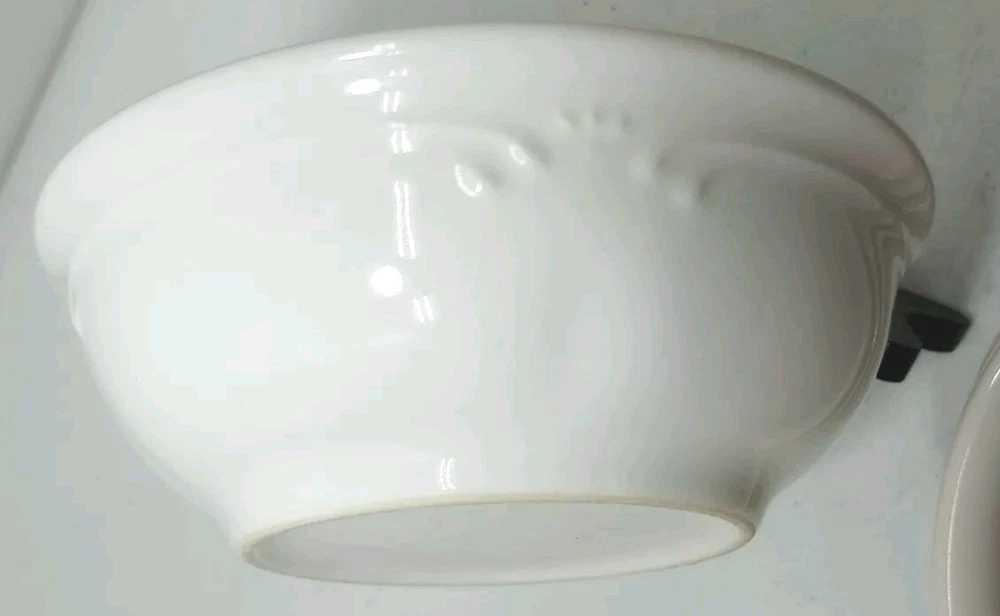 This set of four Pfaltzgraff Filigree soup/cereal bowls is a perfect addition to any dinnerware collection. The round shape and shiny finish of the stoneware material make them suitable for all occasions. The bowls are dishwasher safe, making cleaning up a breeze. The set includes four bowls with a solid white pattern and no character or theme. They are made in China and are perfect for serving soup or cereal. Upgrade your dining experience with these elegant and practical bowls.
