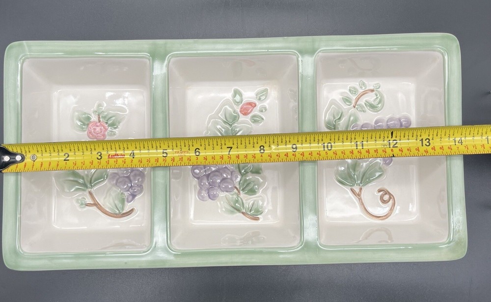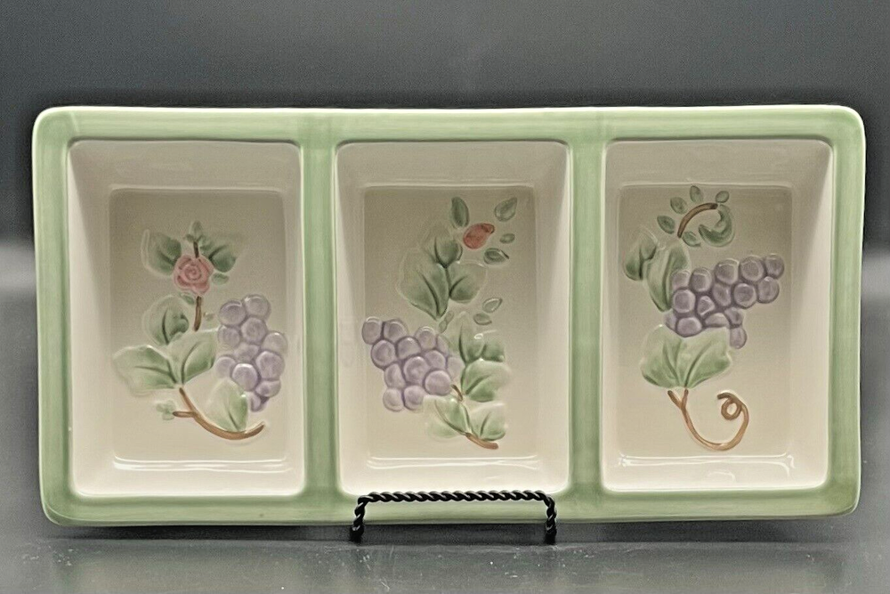 Pfaltzgraff GRAPEVINE 3 Section Serving Tray Platter ~14" X 7". A lovely piece perfect for gatherings. There is one, very small, nick in the glaze. This has been shown in the photos. Do you see more than one item that you want? I can combine shipping. Once you have clicked the “Buy It Now” option, request an invoice BEFORE you pay for your items. I am always on the lookout for vintage and sought after items. Please check out my sellers page for other great products!