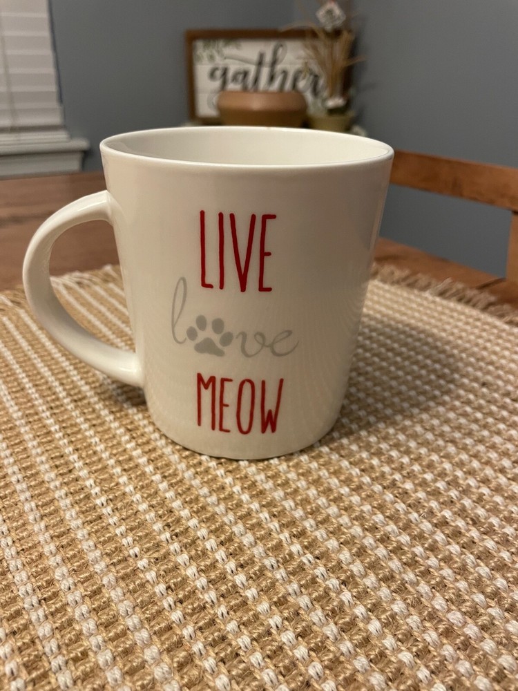 Savor your favorite hot beverages with the charming Pfaltzgraff "Live Love Meow" coffee mug. Crafted with the quality and care you expect from the Pfaltzgraff brand, this white mug features a playful cat motif that's sure to bring a touch of whimsy to your daily routine. The durable design ensures it's a perfect companion for both your morning coffee and evening tea. Its ergonomic shape and size provide comfort and ease of use, making it a delightful addition to any kitchen or coffee nook.