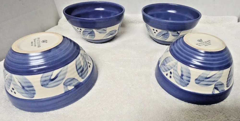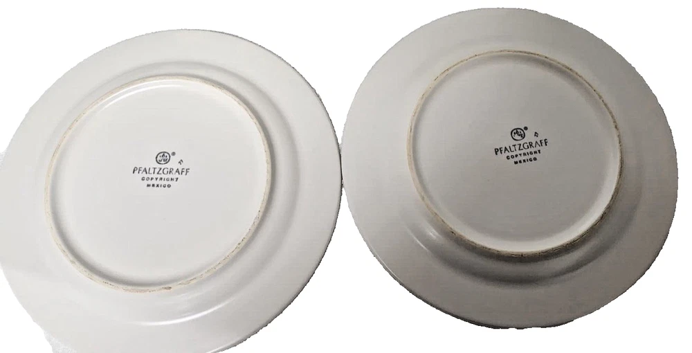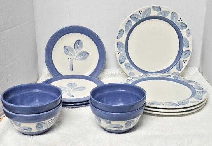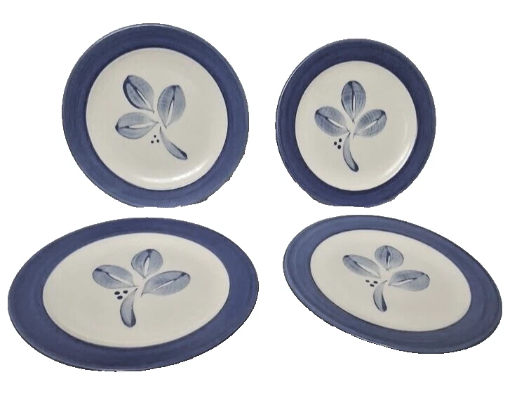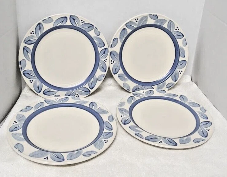 Pfaltzgraff Villa Flora dinner, salad plates and bowls. Four of each. Each plate is beautifully designed with an art deco style and flower theme. Round plates feature a beautiful floral pattern in shades of blue and off white. Bowls feature a floral leaf pattern. Crafted from durable stoneware material, dishwasher safe for easy cleaning. Give your dining experience a unique and stylish touch with these Pfaltzgraff Villa Flora plates. Versatile for various occasions. 4 Salad Plates 8.5" 4 Dinner Plates 11" 4 Cereal Soup Bowls 5.5" Diameter and 3.75" Depth Very Good Condition No stains, chips Personal Inventory ready for new home.