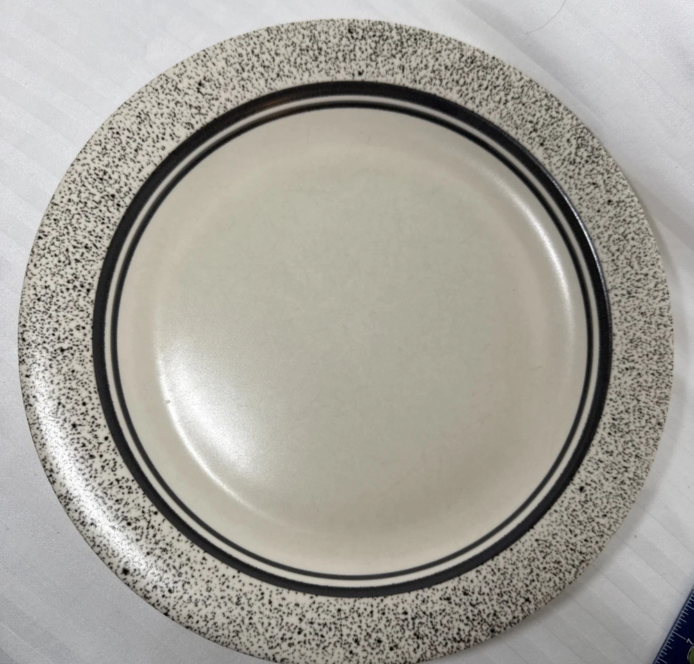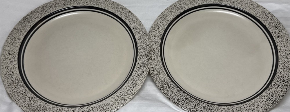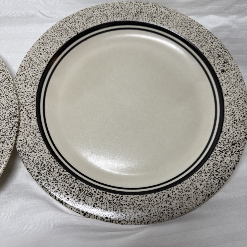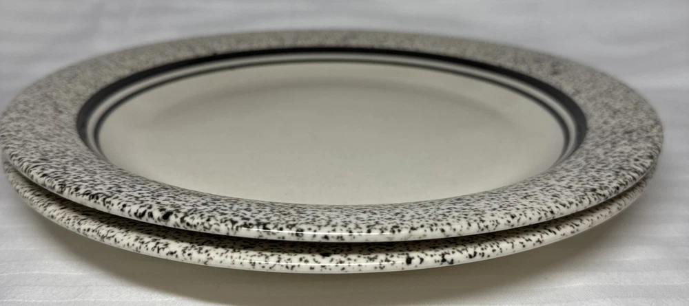 Pfaltzgraff Ceramic Sand Drift Dinner Plates Black White Set of 2 USA 10 3/8" Please see all photos. Items are preowned do show some signs of wear and use. There are some marks from utensil use on the plates, please see photos. Thank you for viewing this listing.