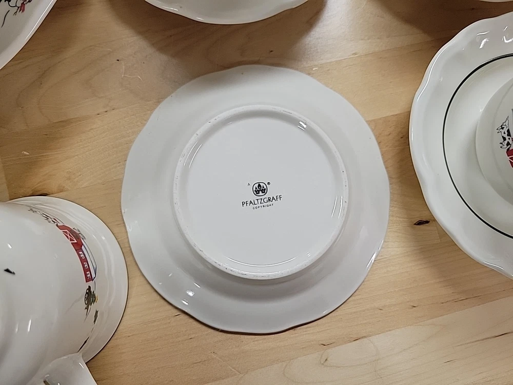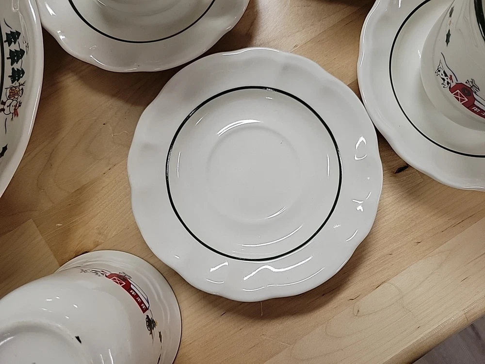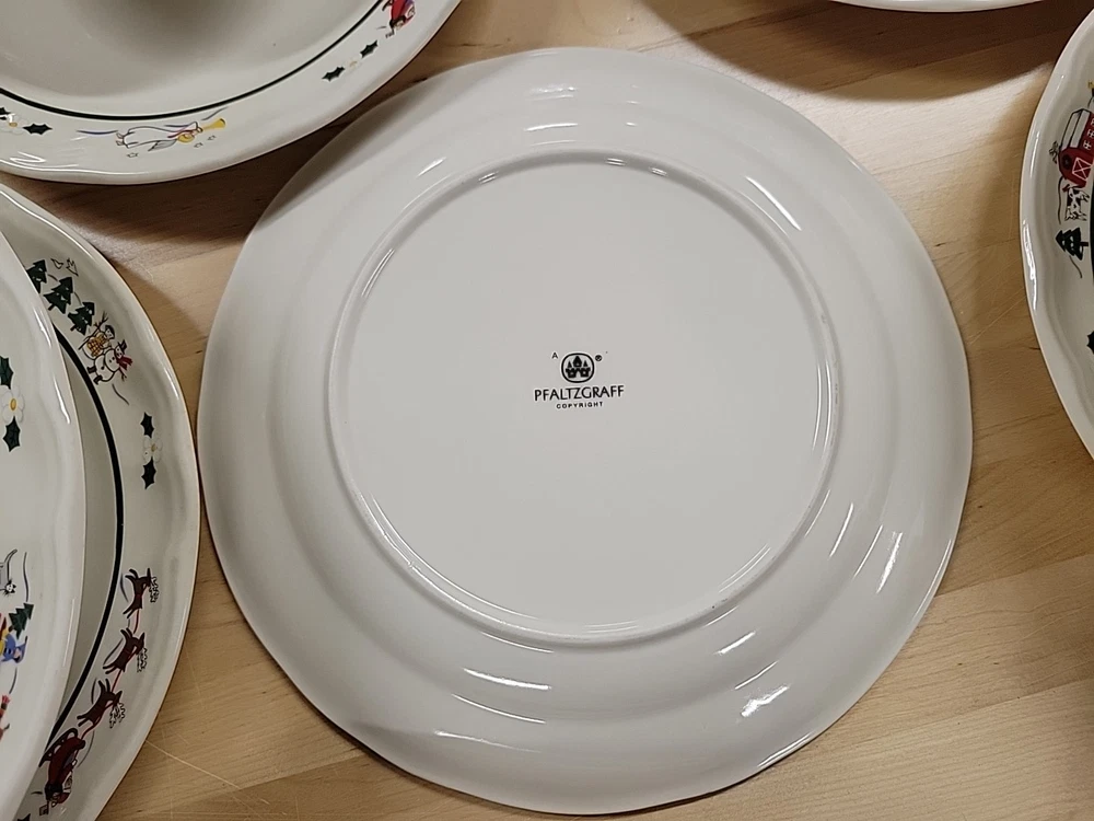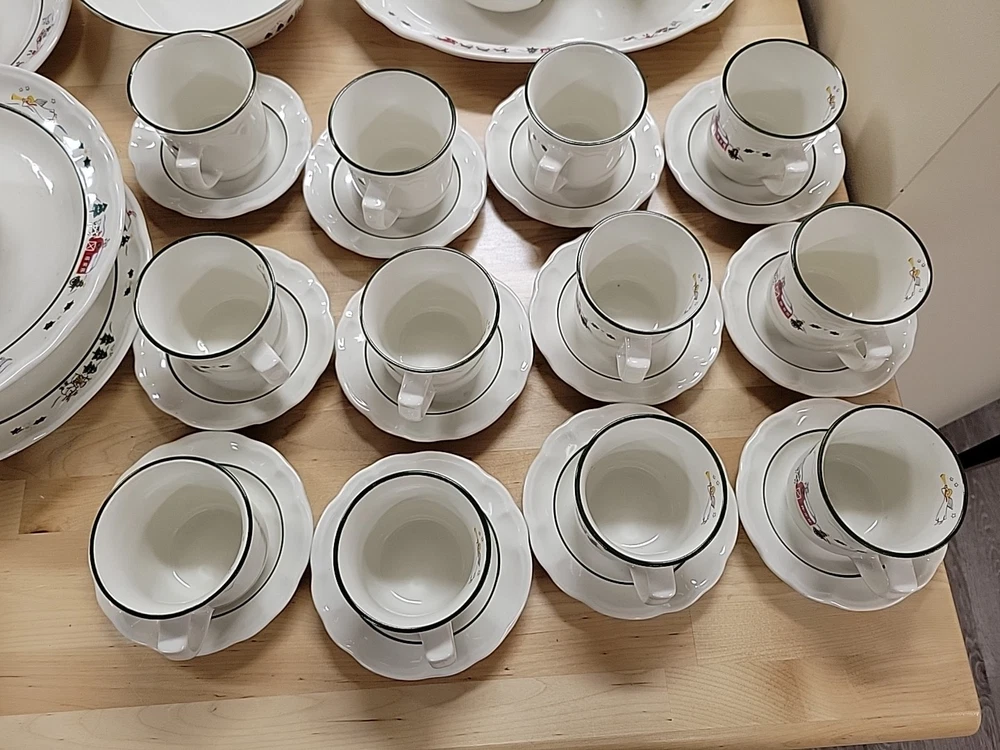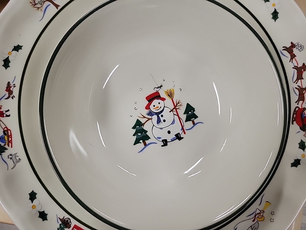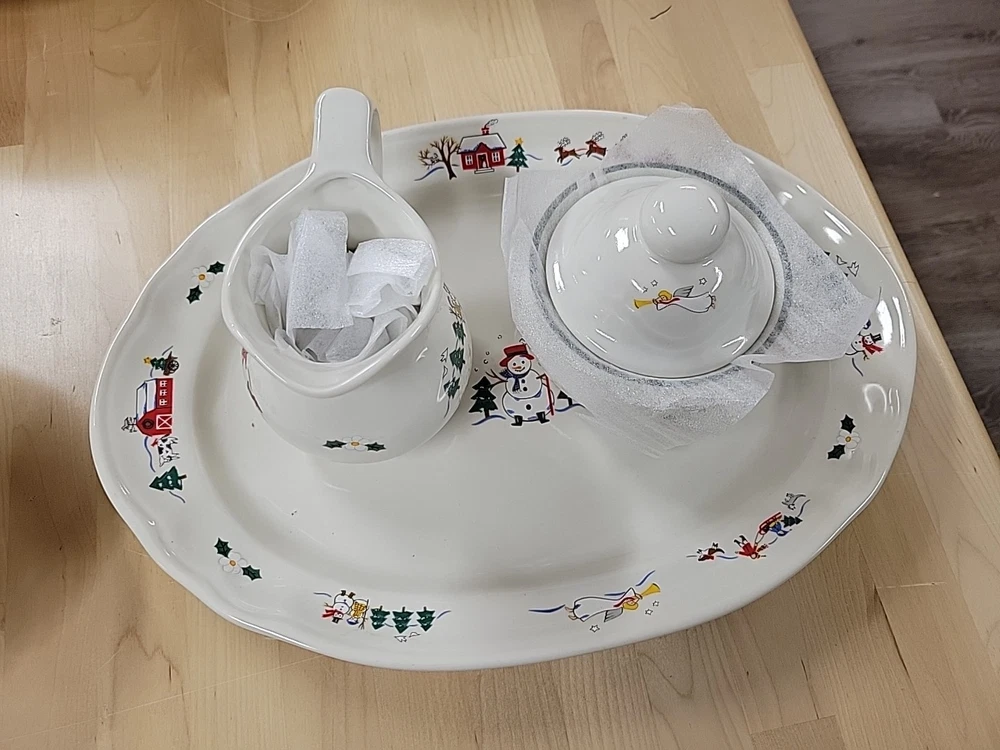 Celebrate the holiday season with the charming Pfaltzgraff Snow Village China . This 62-piece collection features a beautifully detailed Snow Village pattern that captures the festive spirit of winter. Each piece is crafted from high-quality ceramic with a glossy finish, showcasing the artistry of the renowned Pfaltzgraff brand. The set includes This Pfaltzgraff "Snow Village" China set contains 62 pieces (quantity of each where applicable): teacup (12) saucer (16) 15" x 11" serving tray creamer sugar bowl with lid 9" serving bowl 11" dinner plate (16) 6" soup bowl (12) perfect for hosting a Christmas feast. With its multicolor design, the set brings a touch of elegance and tradition to any holiday table. Enjoy creating new memories with this original, decorative dinnerware set that is sure to become a holiday heirloom. See pictures and details. Our merchandise has been generously donated by the friends and families of Community Mainstreaming Associates (CMA). All proceeds from the sale of this item benefit CMA, a 501c3 charity supporting adults with intellectual and developmental disabilities. Thank you for your support.