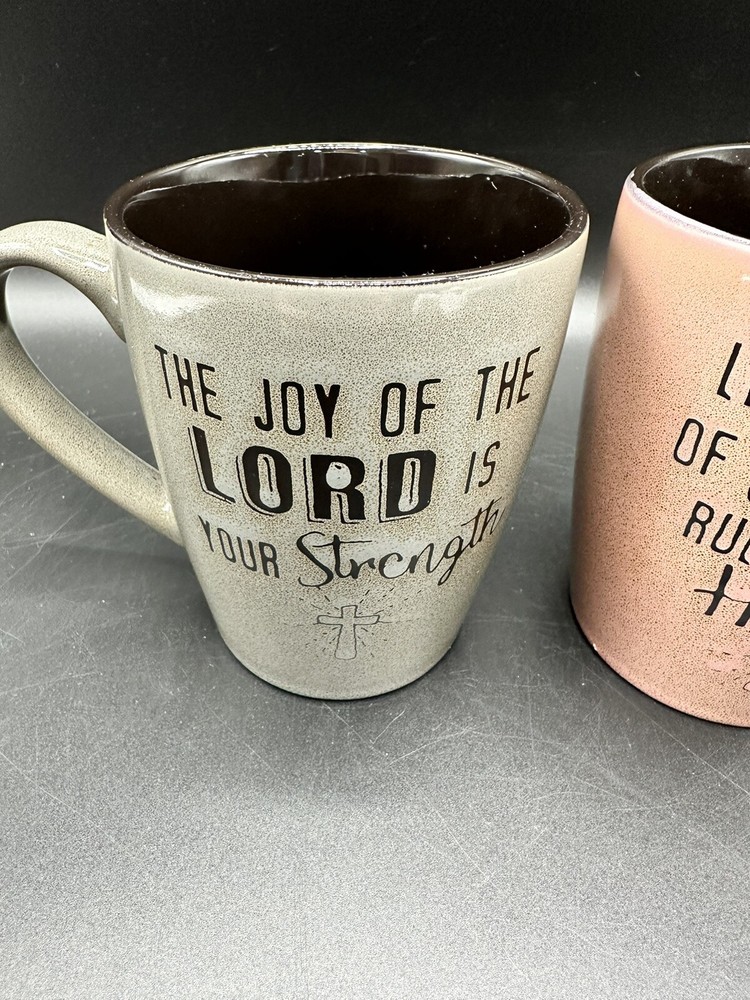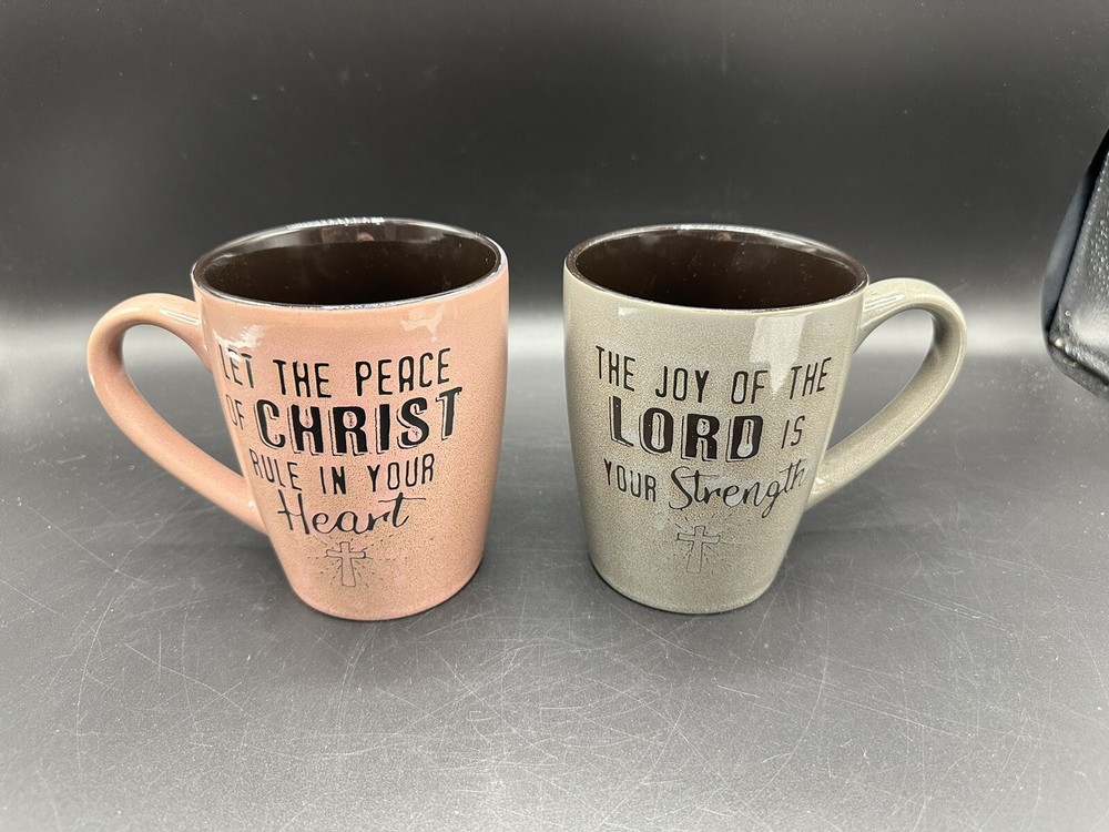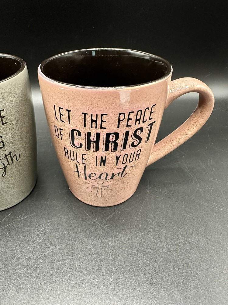 These mugs are in like new condition One says ‘Let the peace of Christ rule in your heart’ One says ‘The joy of the Lord is your strength’