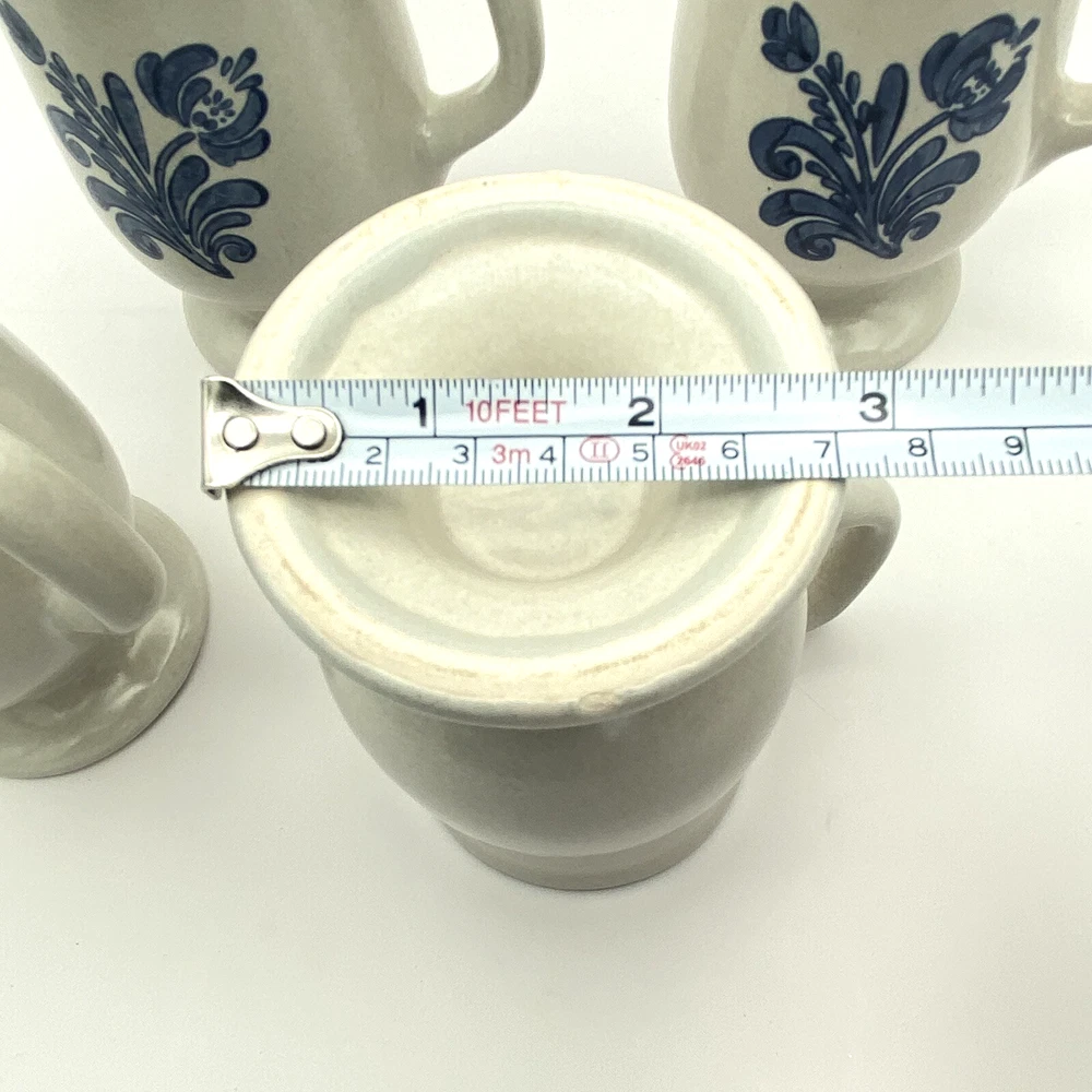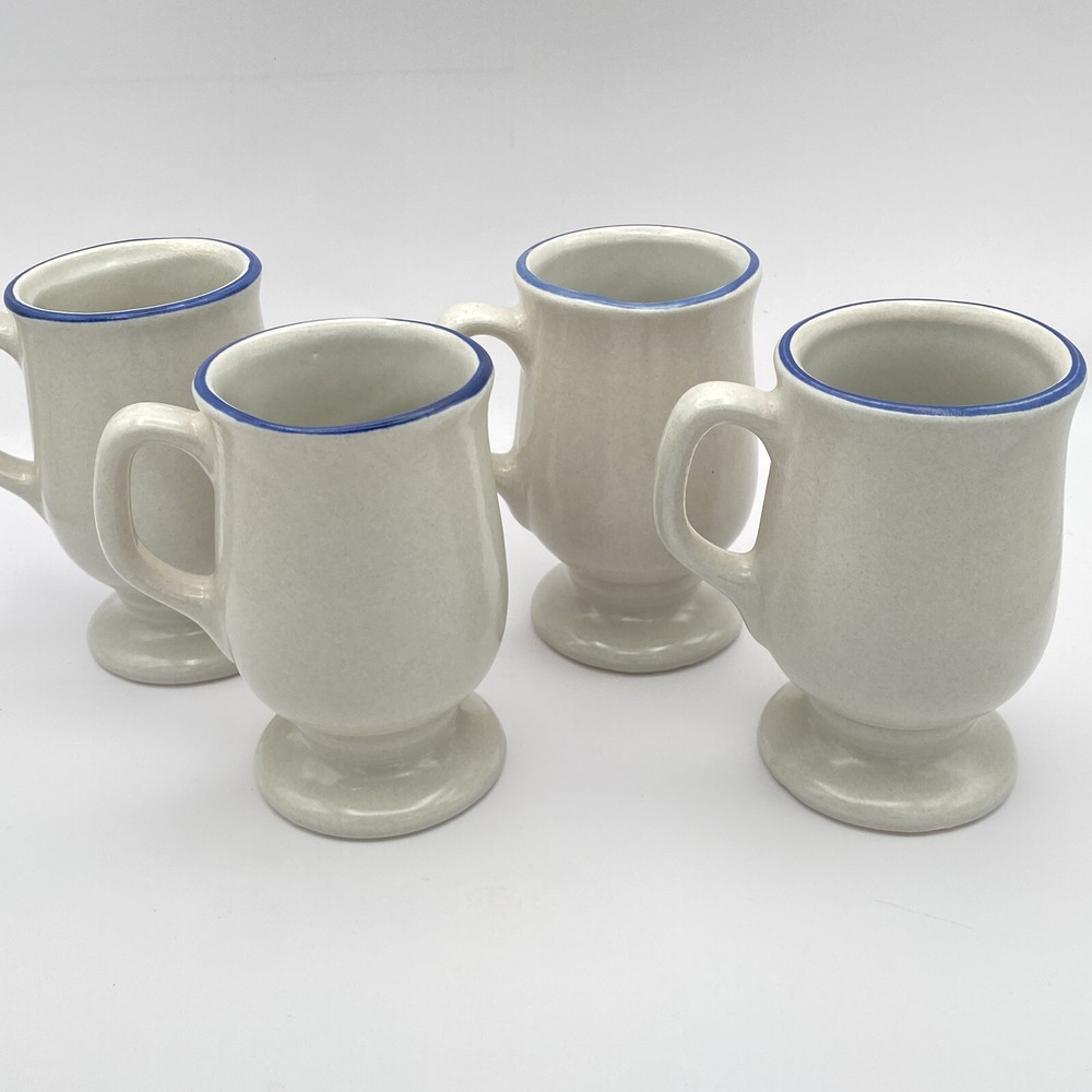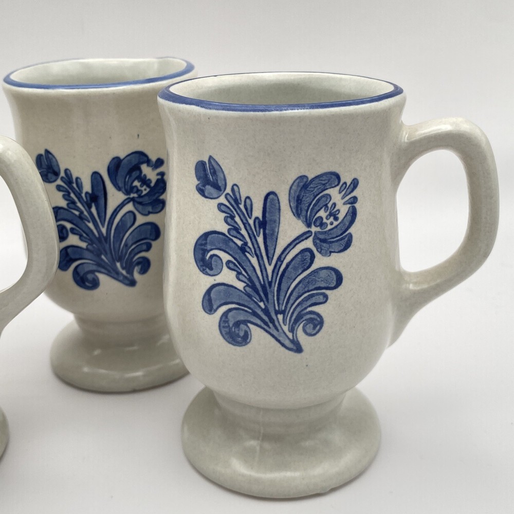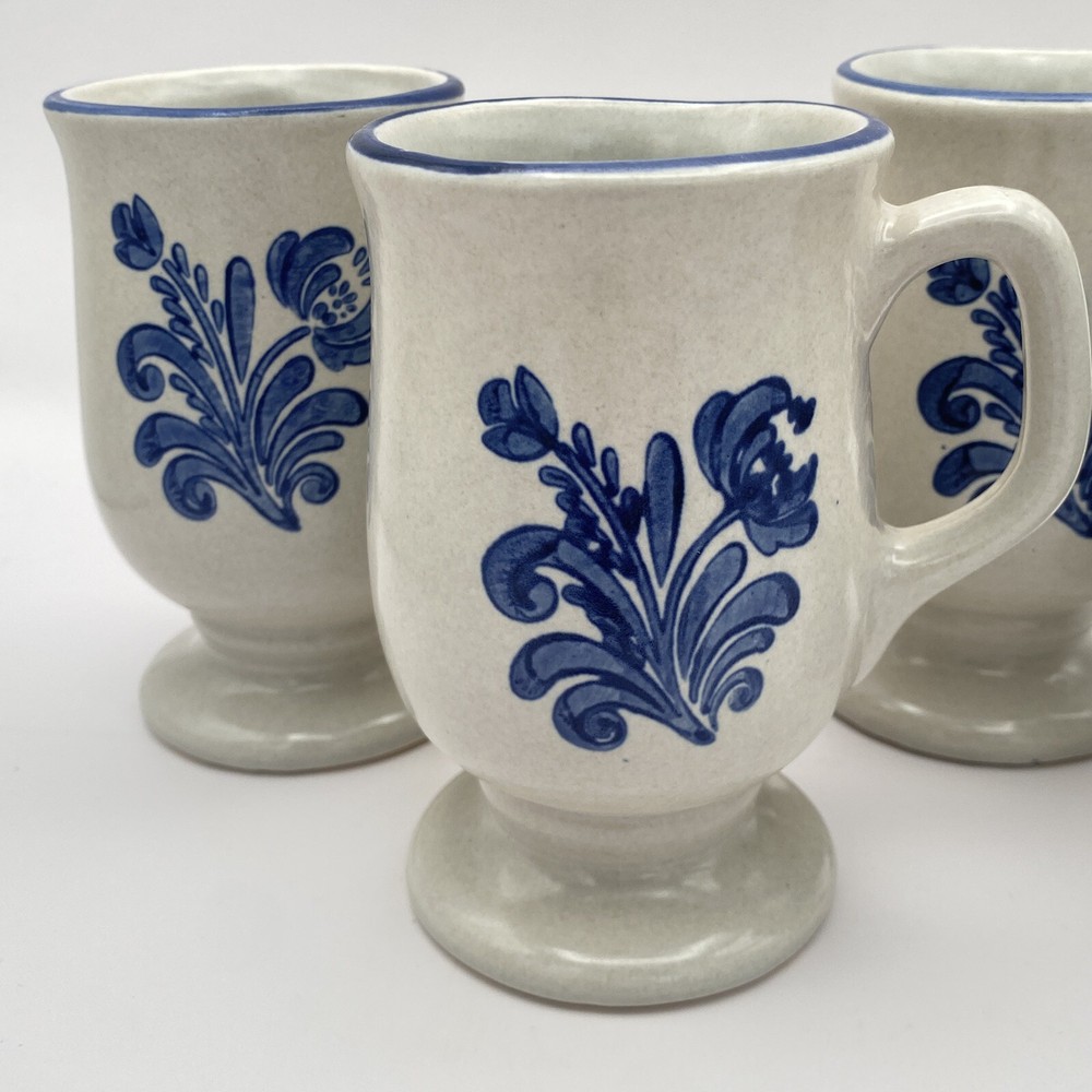 Pfaltzgraff Yorktowne Footed Pedestal Mugs Coffee Cups 5" Stoneware Set of 4 Vtg Set of 4 pedestal footed mugs in very good vintage condition. Light minor scratches from use. One bottom edge has a glaze chip. No crazing detected. See photos for dimensions and details. Ships by USPS Ground Advantage.