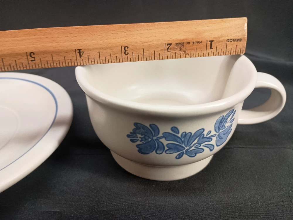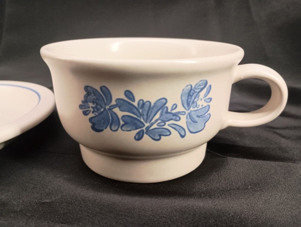 The Pfaltzgraff coffee/tea cup and matching saucer set features a Yorktowne pattern with a matte finish, making it a vintage piece manufactured in 1985. The stoneware set showcases a floral design in ivory and blue colors, embodying a round shape with a handle for convenient use. This original production from Pfaltzgraff in the United States is suitable for hot beverages, adding a touch of charm to any occasion with its timeless appeal. Thank you for visiting my listing today and thank you for your interest in this item! My goal is to have a pleasant transaction resulting in a satisfied customer. I hope any transaction between us leaves you with a feeling of confidence knowing you can trust me and the items I offer here. *Most if not all my listings are set to accept offers. Feel free to send an offer and I will be happy to consider it!! *Please contact me with any questions or concerns and I will be happy to help. *Always examine the photos carefully, and if in doubt, email me with any questions you may have. *Please note that condition statements are offered as a guide only. They will always be somewhat subjective and reflect our opinion, which may not necessarily agree with someone else's opinion. PLEASE READ: I aim to please and I want my buyers to have a positive transaction with me. If you have questions, concerns, or special requests related to any of my items I hope you will contact me so we can work them out to your satisfaction. I sell my items to give you a great item at a decent price while making a little profit at the same time. If you feel the item you are interested in is too pricey do not hesitate to send me a fair offer and I will consider it. My goal is to satisfy your needs and mine so both parties can benefit. SHIPPING: If you prefer a different shipping method or company please contact me and I will do all I can to make that happen. If you have concerns or requests about the packaging of your item contact me and I will do all I can to accommodate them. Shipping costs are based on location in each state or country, the costs always differ. After I have received your payment I will ship your item out within 3 business days or less excluding weekends and holidays. BEFORE PURCHASING & BIDDING: **Please see all the pictures. I do not have great photography skills but I try to get the most accurate photos I can. If you are unsure about something you see in a photo contact me so I can do what I am able to answer your concern about the item. **I cannot stress enough that if you have any questions or concerns please contact me before purchasing and bidding. Communication can solve so much. **As a customer myself, I understand the meaning of customer satisfaction and my goal is to have nothing but satisfied customers. If you are not unsatisfied with your purchase I ask that you please contact me so I can take care of your issue. My goal is for you to be 100% satisfied. INTERNATIONAL BUYERS WELCOMED - PLEASE NOTE: I welcome International buyers! Please be aware that any custom/duties/taxes that the parcel might incur once it is out of the USA are the responsibility of the buyer. Please check with your country's customs office to determine what these additional costs will be prior to bidding or buying. Please refer to the eBay Site Map for more information if needed.