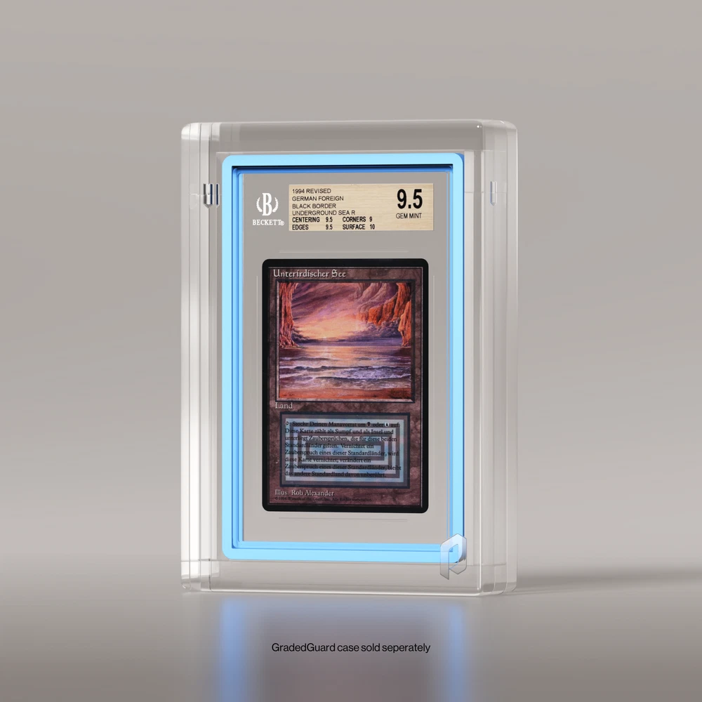 Phantom Display x GradedGuard (BGS Ultra - Rounded) GradedGuard Compatible Custom designed to fit GradedGuard cases seamlessly. *GradedGuard Case Sold Separately Product Overview Our Phantom Display Acrylic Card Case is designed to protect and showcase your prized trading cards, sports cards, and graded slabs from PSA, BGS, or CGC. Made from crystal‐clear, UV‐resistant acrylic, this case prevents harmful sunlight exposure while enhancing your display with a sleek, professional look. Whether you’re collecting baseball cards, basketball rookies, or Pokémon rares, trust Phantom Display for premium protection and top‐tier presentation. Key Features: UV Protection: Blocks 99.6% of harmful UV rays to keep card colors vibrant and protected. Durable Acrylic Construction: Offering substantial physical protection against accidental drops and scratches. Museum-Grade Transparency: These handcrafted, crystal acrylic cases provide museum-grade transparency. Sizing: Fits standard sized PSA graded card slabs. Product Specs: Frame Thickness: 10mm UV Resistance: 99.6% Visible Light Transmission: 92.6% Material: Crystal Acrylic, 2x Neodymium Magnets Weight: 390-410 grams (13.75-14.5 oz) Edge Style: Rounded (See additional listings for other variations) Compatibility: This display is specifically designed to fit BGS TCG/Sports Cards with a GradedGuard case equipped. *GradedGuard case sold separately Why Choose Phantom Display? Protective UV acrylic for long‐term preservation and display. Ultra premium crystal acrylic for the highest level of transparency and clarity. Sleek design to highlight your collection. Perfect for sports or trading card enthusiasts. 30‐day return policy & fast, reliable shipping. Acrylic Care: Never use solvents to clean displays. Cleaning products that include alcohol, acetone, or ammonia (even glass window cleaners) will cause significant surface damage/cracking. Only use safe, Phantom Display-approved cleaners available in our shop. Shipping & Return Policy: We accept returns on all unopened and unused products for up to 30 days. If the item arrives back to us in a condition that would render us unable to sell that item again, we will not be able to accept the return. If you have any questions or concerns whatsoever, please do not hesitate to contact and we will be happy to make you feel confident and comfortable with your purchase!
