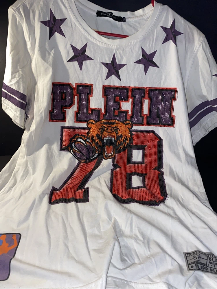 This Philipp Plein sport shirt is a must-have for any fashion-conscious man. The shirt features a solid pattern with short sleeves and a regular fit, making it perfect for any casual occasion. The shirt is made of high-quality materials and is designed to be double-sided, adding an extra element of style to the shirt. The shirt is perfect for fans of the Bearcats and features their logo prominently on the shirt. The shirt is available in size XL and is multicolored, making it a great addition to any wardrobe. The shirt is designed with accents that add an extra touch of style to the shirt, making it perfect for any sports-themed occasion.