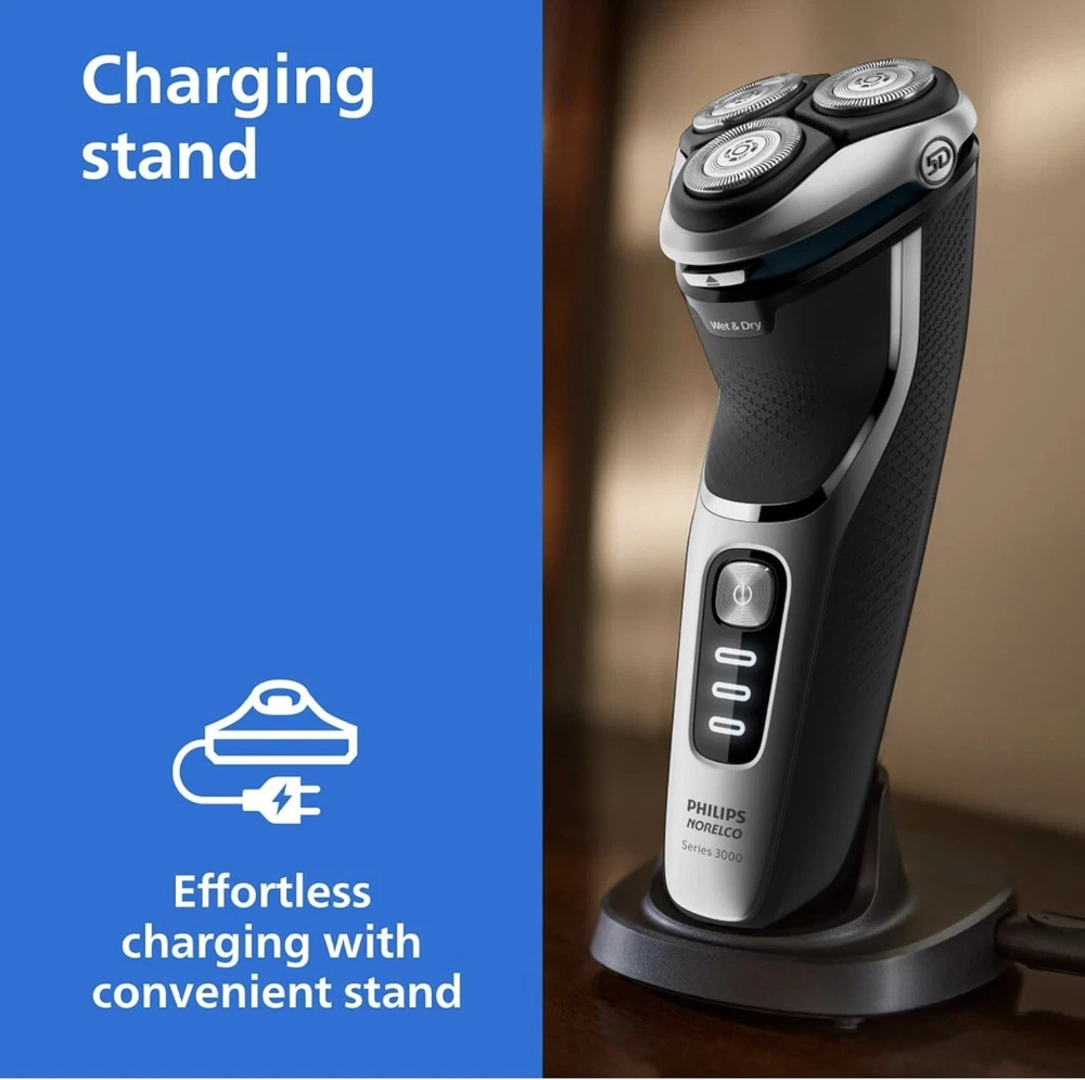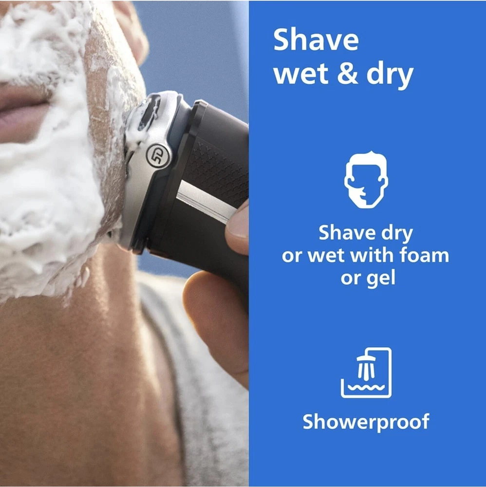 Philips Norelco Shaver 3800 Wet & Dry S3311/85 Used, tested it works. Missing travel pouch. Item: Q2(24) Enjoy a clean shave that follows your face's contours with 5-directional pivot, flex and floating movements. The head reaches your face at the ideal angle and adjusts to the curves of your face and neck, creating smooth contact with your skin. Get a convenient dry shave or a refreshing wet shave with gel or foam, even in the shower. With ComfortCut blades, you get a clean shave that's comfortable on your skin. Rounded caps shield 27 self-sharpening blades to gently cut hair just above skin level and help the shaver glide smoothly over your skin. Finish your look with the built-in pop-up trimmer. It’s ideal for maintaining your mustache and trimming your sideburns. Shave for up to 60 minutes on a 1-hour charge - that's about 20 shaves - with the powerful Li-ion battery. A 5-minute quick charge gives enough power for one shave. Operates in cordless mode only.