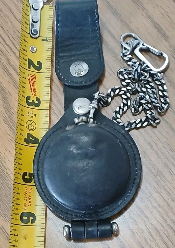🦅 Classic Eagle Pocket Watch w/ Leather Case & Chain This Phillip Crowe pocket watch features a bold eagle dial design with a quartz movement housed in a leather protective case , complete with a matching chain and clip . A great piece for collectors or anyone who appreciates classic wildlife-themed timepieces. The watch is pre-owned and shows wear consistent with age and use, primarily on the leather case (surface wear and natural aging). The watch has not been tested and will likely need a new battery. No further testing has been performed. You will receive the exact item shown in the photos. ✔ Condition • Pre-owned with minor wear • Leather case shows surface wear and aging • Watch functionality untested (battery needed) • No cracks noted to the crystal • Chain and clasp included ✔ Measurements (approximate) • Watch face: 1⅝" x 1⅝" • Watch with leather case: 2½" across • Length (open): 9" • Length (closed): 6¼" • Chain length: 12" (about **13½" including clip) 📦 Ships quickly and carefully by the next business day. --- 🗝 Pocket Watch • Eagle Watch • Wildlife Timepiece • Leather Pocket Watch • Quartz Watch • Collector Watch • Vintage Style Watch • Gift Idea --- 🔎 #PocketWatch #PhillipCrowe #EagleWatch #WatchCollector #QuartzWatch #LeatherCase #MensAccessorie