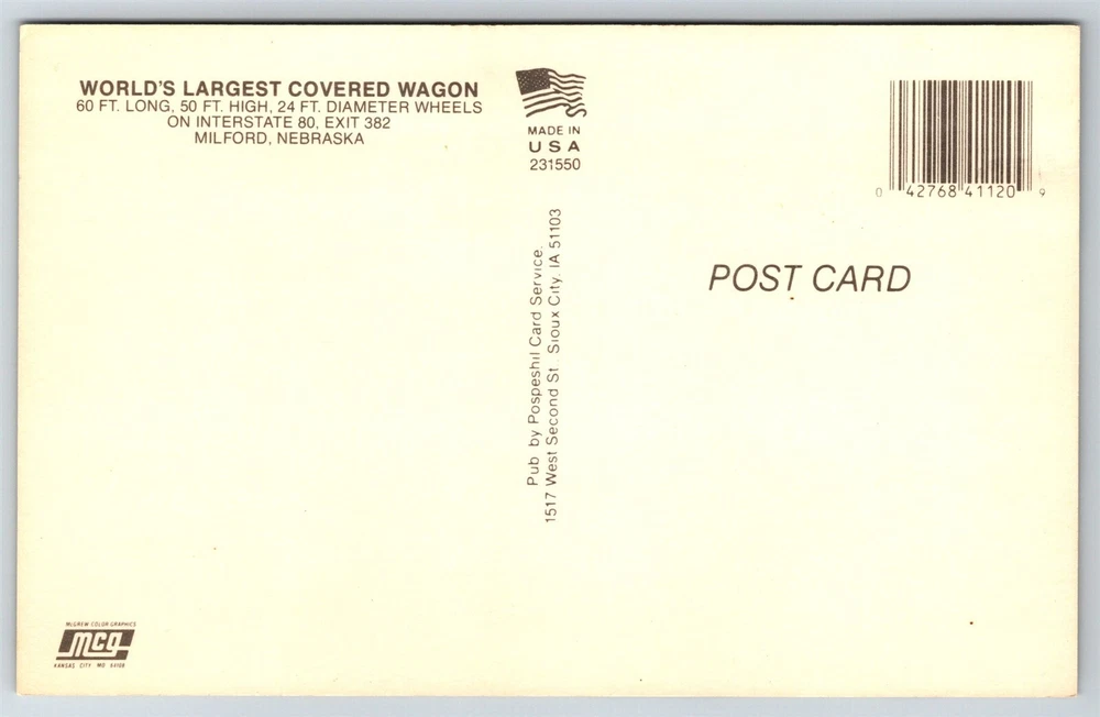 Phillips 66 Gas Station Worlds Largest Covered Wagon Milford NE Postcard AB24