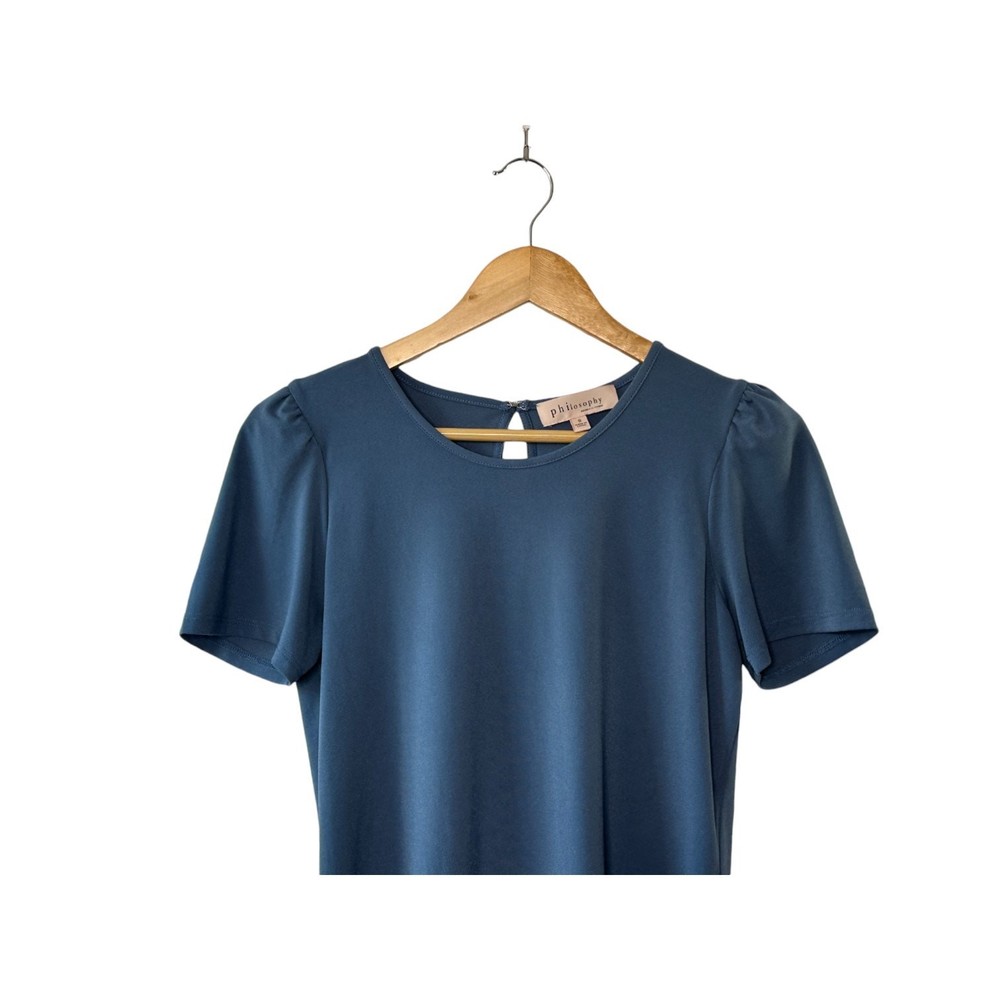 Philosophy Blue Short Sleeve Blouse Women's Size Small Chest 19" Length 25" 96% polyester 4% spandex Like New Condition From a smoke free and pet friendly home.