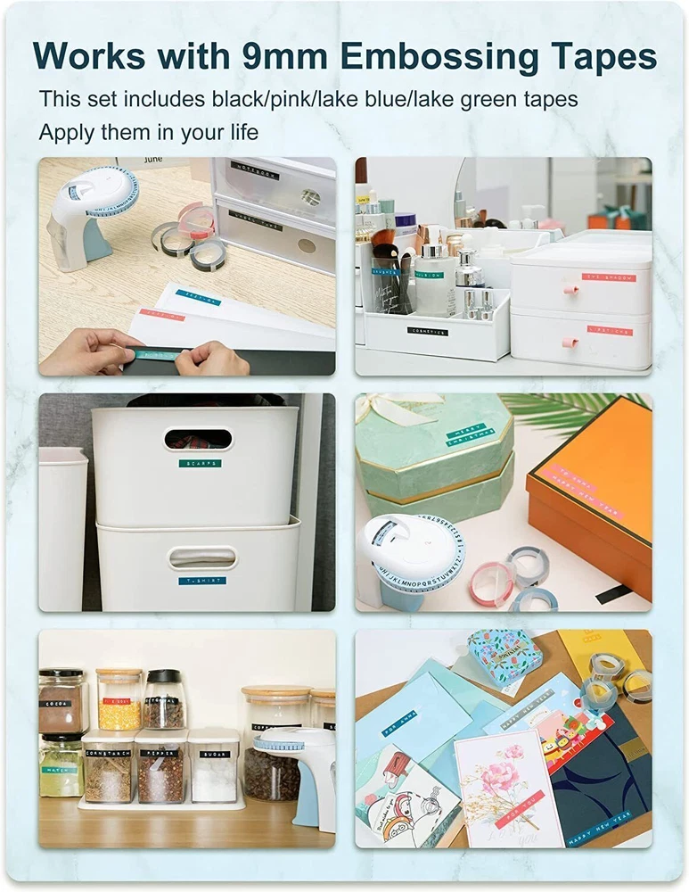 Specification: Brand:Phomemo Printing technology:Thermal Special feature:Portable Printer output:Monochrome Product dimensions:12.6D x 8.6W x 11.6H centimetres Print media:Labels Scanner type:Portable Compatible devices:Smartphones Product Options: - 5 Rolls of Black Labels: Perfect for all your labeling needs with a classic black finish. - 5 Rolls of Colorful Labels: Add a splash of color to your labels with our vibrant options. - 4-Color Label Printer: Choose from four different colors to customize your labels exactly how you want them. Feel free to pick the option that best suits your needs! About this item Convenience Portable Label Maker Embossing Dials -Our embosser label printer’s dial is designed with useful 48 characters wheel,Prints letters, numbers and daily symbols. Memoking E975 embossing label maker features a sturdy 48-character dial and an ergonomic handle, and does not require batteries or ink, a firm press on the handle gives a nice embossed letter or symbol on the label. Embossed label maker come with 6 rolls of durable 3D embossed label tape (Black*3/Red*1/Silver*1/Gold*1), which is waterproof, oil-proof, wear-resistant, high-temperature resistant, low-temperature resistant, and non-fading. It has good adhesion, and even if it is stuck outdoors in the sun and rain, it will not cause fading or movement of the label. 3D label maker machine has a built-in cutter, and the sharp blade can fully cut the Embossed label tape in 1 second. When cutting, it also makes some small dotted holes at the tail end of the label to make the Embossed label tape easier to tear. Use the Color embossed label tapes to organise your home, office, business and other things including plastic boxes, spice bottles, spice jars, document files, wrapped gifts, photo albums and DIY crafting ,make tidying up more interesting Package Included: 1 Embossed Label Maker 3 x Black Label Tape 1 x Pink Label Tape 1 x Blue Label Tape 1 x Green Label Tape Item Specifics Brand : Phomemo Model : E975 Series : E975 Print Technology : Embossing Connectivity : Wireless Type : Label Maker