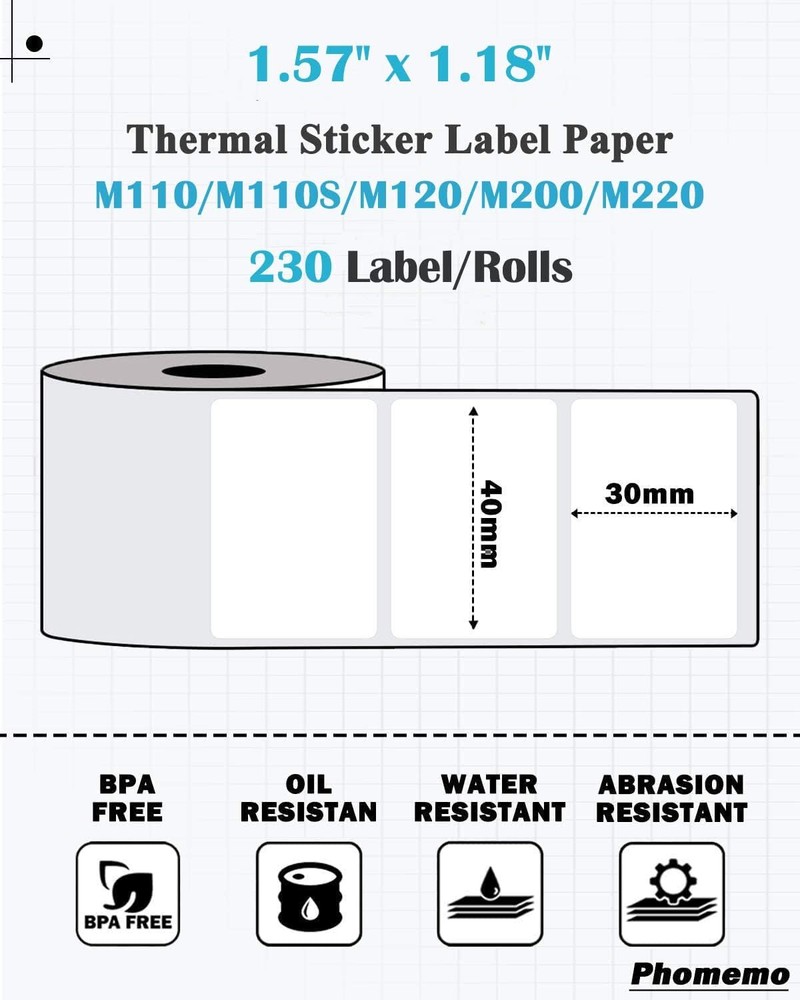 $ 50.16Square Thermal Sticker Labels Self-Adhesive Tag Paper for Phomemo M110 M220 M200