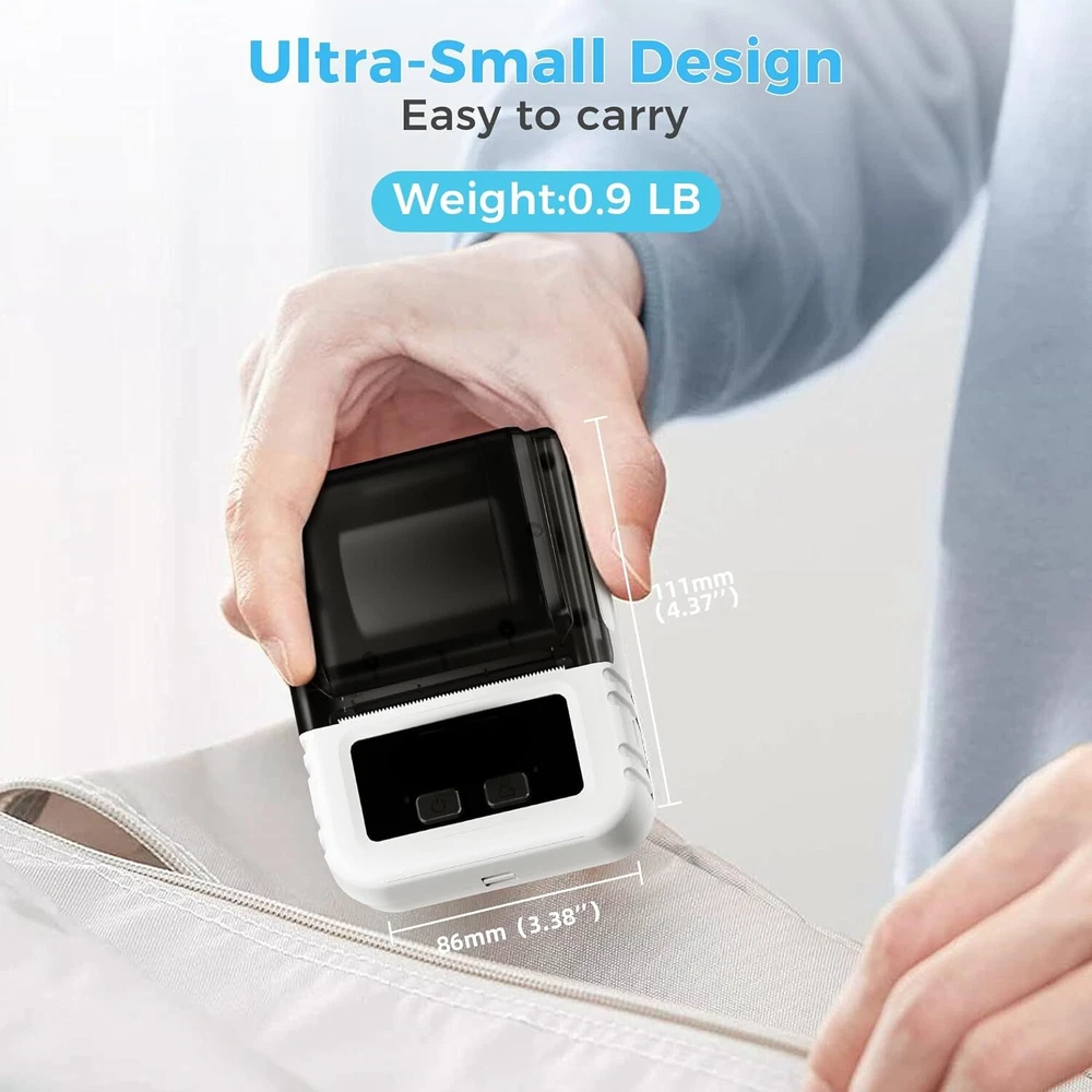 Product Description About this item Inkless Thermal Label Maker: Phomemo M120 label maker-never need the ink, toner, and ribbon again, offering a printing speed of 50-70mm/s and a print resolution of 203 dpi. It can print labels quickly with clearer content, making your business, home, and office run more efficiently and saving money. (With 1 Roll 40X30mm label) Powerful App "Print Master" : Bluetooth label maker machine with "Print Master" APP built-in a powerful voice, image recognition, text, pictures, barcodes, QR codes, OCR, etc. function. With 9 font sizes, 128 templates, 354 symbols, and support for Excel batch printing, you can customize your labels to suit your needs. Bluetooth Connection: The wireless mini label maker can connect to your smartphone via Bluetooth 4.0 in just 2 seconds, with a range of up to 33 feet. It's compatible with iPhone, Android, and Google Play, making it easy to use on the go and helping your business run faster. Long Battery Life & Portable Carry: Mini portable label printer provides up to 12 hours of working time from a single charge and 1 week of standby time. Phomemo M120 label printer has 30% more battery life than similar products on the market and easily carry with you wherever you go. Widely Used: Phomemo M120 barcode printer can be used in small businesses, offices, homes, kitchens, etc. Such as label addresses, barcodes, prices, dates, ingredients, logos, and classified labels for products. Saving a lot of time for handwriting labels to enjoy life with your family.It is a perfect gift for your family, friends and businesses. Easy to Use Label Maker Printer Phomemo M120 Label Maker Mini Bluetooth wireless thermal mobile label printer, connect your mobile phone easily. There are a lot of templates in APP, you can easily print any label you need, clothing labels, barcode labels, cable labels, jewelry labels, address labels, folder labels and so on. Phomemo-M120 Label width range of is 20mm~50mm, the largest printable width is 48mm. Mini printer, 2 inch label maker Portable label maker, Easy-come and easy go This printer is only 86mm*111mm*59mm and weighs 225g, which can put it in your bag, and easy come and easy go. Gift Label Barcode Label Address Label Package Label