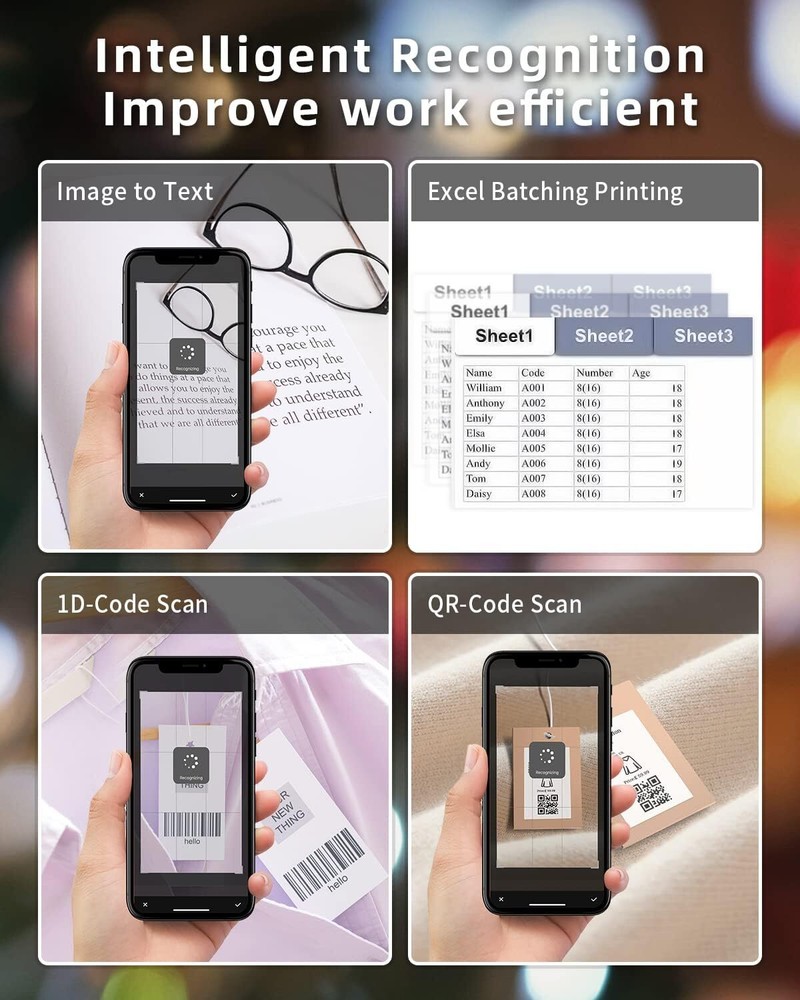 Brand Phomemo Connectivity Technology Bluetooth Printing Technology Thermal Special Feature Portable, Bluetooth, mini, Compatible with smartphone & tablet Color Black Recommended Uses For Product Office Model Name M120 Label Maker Printer Output Monochrome Max Printspeed Monochrome 70 ppm Operating System IOS, Android About this item 2 Inch Portable Label Maker: Phomemo Bluetooth Portable Label Maker features an upgrade version that can support Precut and Non-precut labels, and the transparent label paper, to meet all labeling needs; You can manually select any label size you want. Perfectly for home, office, organization, gift, and more applications. Powerful APP & Intelligent Recognition: The Phomemo "Print Master" APP has powerful voice recognition and image recognition technology (OCR) to improve work efficiency. It's equipped with a broad range of label customization options, including 9 font sizes, 128 templates, and 354 symbols. It also supports Excel batch printing and print retail labels, cable labels, drug labels, and more. High Compatibility - Phomemo M120 label maker machine not only supports IOS, and Android mobile phones with Bluetooth 4.2 connection but also supports USB connection for Mac and Windows 10. NOTES: If your mobile phone is Android, please open the location information of the mobile phone and then connect to Bluetooth. Long Battery Life& Easy to Carry: This barcode label printer gets 12 hour's worktime from a single charge (only 1.5h charge time) and 1 week standby time, 30% more time than similar products on the market; Micro USB port supports fast transmission and charge speed; Our wireless handheld mini label maker is the lightweight device; You can easily carry it wherever you go - Put it in your pocket or bag, get to print anytime, anywhere. Surprise Gift & Widely Use: Our thermal label printer package includes the M120 label printer, AC adapter, rechargeable lithium-ion battery, and the label adjusting board, the users' manual, And We will give you an extra 1.18''*0.78'' (40X30mm) M120 label paper (100pcs); Just for your convenience. It's suitable for labeling, storing, marking, and more endless tasks daily; It's ideal for Valentine's Day, Halloween, Thanksgiving Day, Christmas, and holiday presents to your family and friends. Product Description Phomemo M120 Label Printer, Help You to Solve All Business Issues, Stay Organized and Efficently. Easy to Use Label Maker Printer Phomemo M120 Label Maker Mini Bluetooth wireless thermal mobile label printer, connect your mobile phone easily. There are a lot of templates in APP, you can easily print any label you need, clothing labels, barcode labels, cable labels, jewelry labels, address labels, folder labels and so on. Phomemo-M120 Label width range of is 20mm~50mm, the largest printable width is 48mm. High Speed Printing M120 label maker, The printing speed is 70mm/s, print all what you want to print. Portable Label Maker Portable Small mini Cute Design, Carry it anywhere ,always stay organized. USB Charging Full charge has 1 week standby time,No need to worry Multi Style Labels ''Print Master'' APP has so much multi-style labels could be used ,square, rectangle ,circle labels.only black on white pap Gift Label Barcode Label Address Label Package Label