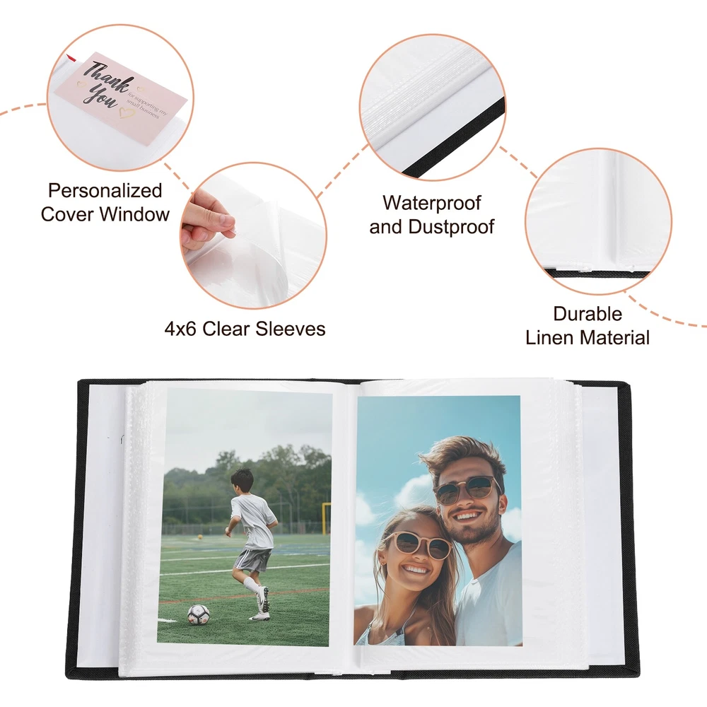 Document Description:[Durable Linen Material] The robust linen cover not only adds a touch of durability to your album but also protects your cherished memories from everyday wear and tear. Rest assured that your photos are secure, creating a keepsake for years to come.[Versatile Use] Despite its ample capacity, our memories photo album remains lightweight and portable. Its compact size enables you to carry it effortlessly, making it the perfect companion for travels, vacations, and special occasions.[Personalized Cover Window] Features a personalized cover window, allowing you to showcase your favorite picture and add a personal touch to your album. Each page is meticulously stitched and bound, providing a seamless and effortless display of your memories.[Timeless Design] Our photo album is designed to protect and showcase your memories, ensuring they remain safe from acid, air, and dust. With our album, you can relive the moments that make life beautiful.Specification:Color: BlackMaterial: LinenShape: RectangularOccasion: Engagement, Wedding, Anniversary, Family, TravelOverall Size: 16.5 cm x 12.5 cm/ 6.5” x 4.9” (L x W)Package Content: 2 Pcs x Photo Album Photo Album, 4 x 6 Linen Cover Photo Album Book Holds 100 Pictures, Black, 2 Pcs Description: [Durable Linen Material] The robust linen cover not only adds a touch of durability to your album but also protects your cherished memories from everyday wear and tear. Rest assured that your photos are secure, creating a keepsake for years to come. [Versatile Use] Despite its ample capacity, our memories photo album remains lightweight and portable. Its compact size enables you to carry it effortlessly, making it the perfect companion for travels, vacations, and special occasions. [Personalized Cover Window] Features a personalized cover window, allowing you to showcase your favorite picture and add a personal touch to your album. Each page is meticulously stitched and bound, providing a seamless and effortless display of your memories. [Timeless Design] Our photo album is designed to protect and showcase your memories, ensuring they remain safe from acid, air, and dust. With our album, you can relive the moments that make life beautiful. Specification: Color: Black Material: Linen Shape: Rectangular Occasion: Engagement, Wedding, Anniversary, Family, Travel Overall Size: 16.5 cm x 12.5 cm/ 6.5” x 4.9” (L x W) Package Content: 2 Pcs x Photo Album Hot Item Payment 1.We accept eBay payment . 2.Payment must be received within 7 business days of auction closing. Shipping 1.We ship to your eBay or Paypal address. Please make sure your eBay and Paypal address is correct before you pay. 2.Items will be shipped within 1-3 business day when we received payment. 3.Delivery time depends on destination and other factors. Description Policy Photo Album, 4 x 6 Linen Cover Photo Album Book Holds 100 Pictures, Black, 2 Pcs Description: [Durable Linen Material] The robust linen cover not only adds a touch of durability to your album but also protects your cherished memories from everyday wear and tear. Rest assured that your photos are secure, creating a keepsake for years to come. [Versatile Use] Despite its ample capacity, our memories photo album remains lightweight and portable. Its compact size enables you to carry it effortlessly, making it the perfect companion for travels, vacations, and special occasions. [Personalized Cover Window] Features a personalized cover window, allowing you to showcase your favorite picture and add a personal touch to your album. Each page is meticulously stitched and bound, providing a seamless and effortless display of your memories. [Timeless Design] Our photo album is designed to protect and showcase your memories, ensuring they remain safe from acid, air, and dust. With our album, you can relive the moments that make life beautiful. Specification: Color: Black Material: Linen Shape: Rectangular Occasion: Engagement, Wedding, Anniversary, Family, Travel Overall Size: 16.5 cm x 12.5 cm/ 6.5” x 4.9” (L x W) Package Content: 2 Pcs x Photo Album Hot Item Payment 1.We accept eBay payment . 2.Payment must be received within 7 business days of auction closing. Shipping 1.We ship to your eBay or Paypal address. Please make sure your eBay and Paypal address is correct before you pay. 2.Items will be shipped within 1-3 business day when we received payment. 3.Delivery time depends on destination and other factors.