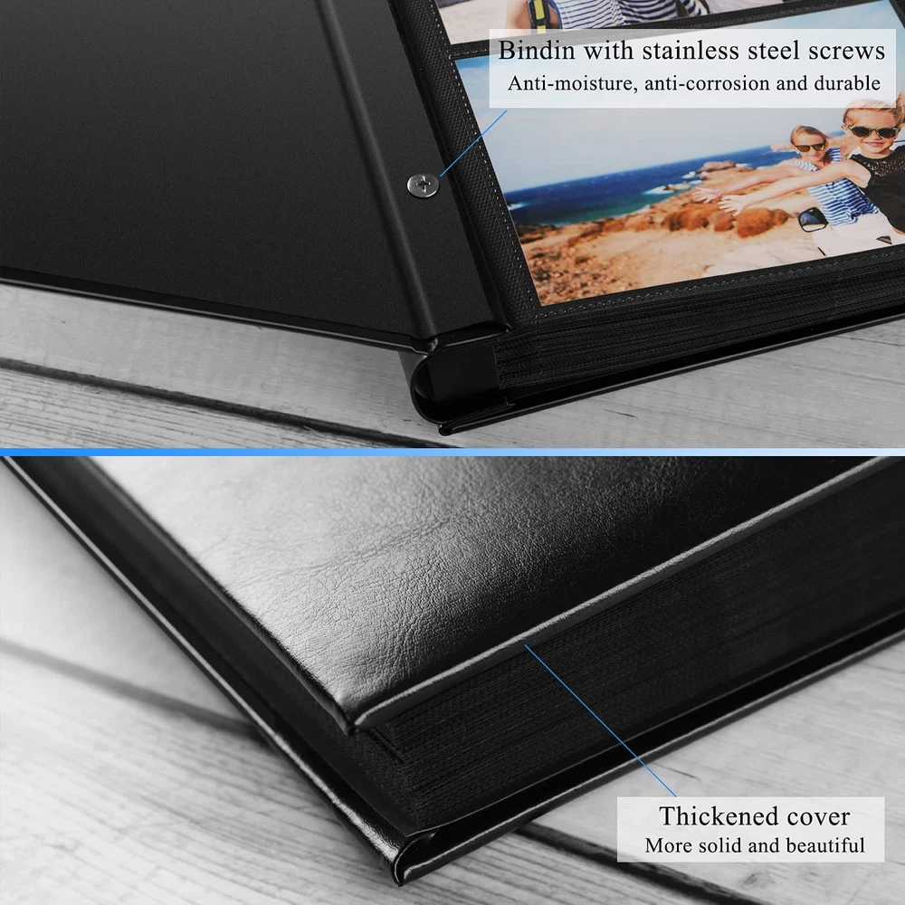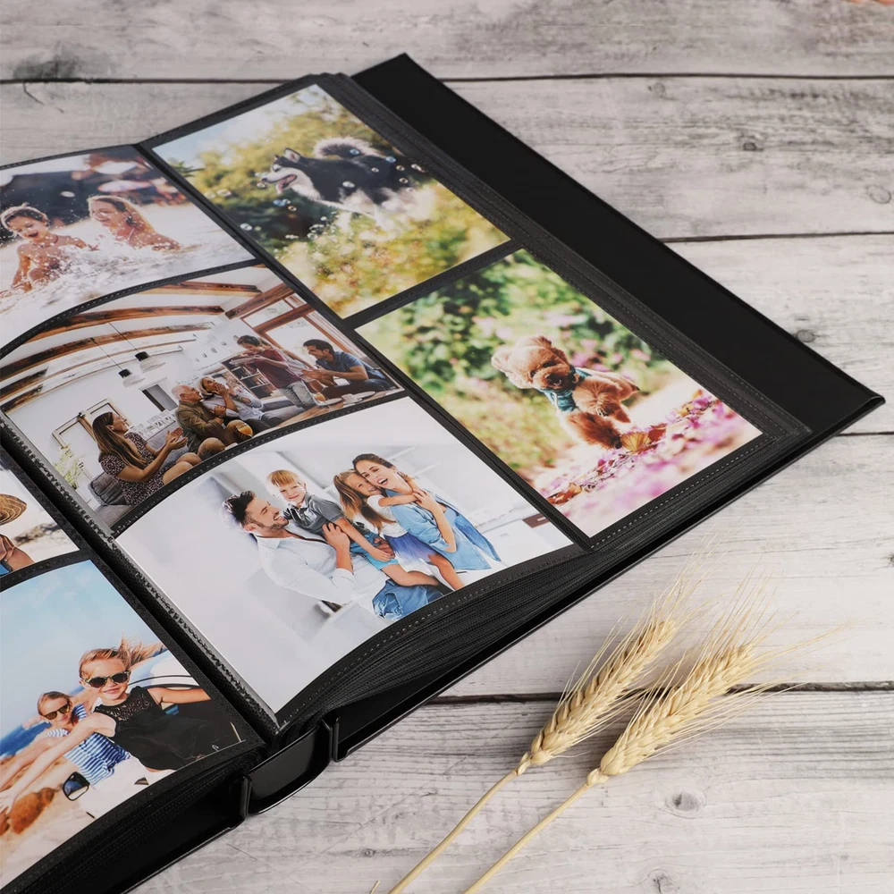 Ideal gift 1.A classic album is a great way to preserve and pass on these family photos. The PU leather photo album is a safe place to keep your photos, even for long term storage. Arrange baby pictures, vacation shots and more in this photo album. These are beautiful pictures and stories that you will be able to pass down generation after generation. 2.It is a durable and attractively designed black photo album that will easily complement any book or album collection and décor. Package Including: 1x Photo Album 9 Pieces Index tabs(1.77 inch) Specifications Capacity: Holds 700 4x6” photos (Each page has 5 pockets to holds 3 horizontal and 2 vertical photos) Cover: PU leather Album size: 13.2*12.3*2.36” (L x W x H) Window size: 3.94X3.94" Weight: 3.44lb Archival, Photo-safe: acid, lignin and PVC free. Advantages: 1.Photo album 4x6 700 photos have a screw binding, they have a classic look and resemble a traditionally bound book. It fits on a standard bookshelf and desk. 2.High-quality leather cover, waterproof, oil-proof, it can protect your photos much well. The PU leather of albums are more environmentally friendly, which is fully comply with international environmental standards 3.Photo pockets are made from clear plastic. It is easy and convenient. You just need to slide the picture into each pocket. 4.Taking ultrasonic imprinting technology, photos repeated insertion will not appear to be separated 5.The index tabs half of the file tabs with self-adhesive and half can be written, repositionable, convenient to stick and mark and remove cleanly. To fine the photos more easily. Note: Fit photo size 4" x 6"(10.2 x 15.2 cm), NOT FIT 4½" x 6"(11.4 x 15.2 cm). Let's take our journey and enjoy, if you have any questions, please us and let us know to make it right for you. 【PLENTY OF ROOM】The photo album measures 13.2*12.3*2.36inches (L x W x H). Weight: 3.44 lb. Album has a total of 70 sheet (140 pages) and holds 3 horizontal and 2 vertical photos per page. It stores up to 700 4x6 pictures. Fit photo size 4" x 6"(10.2 x 15.2 cm), NOT FIT 4½" x 6"(11.4 x 15.2 cm). 【EXQUISITE WORKMANSHIP】The high-quality PU leather hardcover will give you that elegant, classic, nice look. The screw binding made of stainless steel nails, which keeps the pages securely together and do not rust. Your photos will be better protected. This photo album lets you share and cherish your best moments for years to come. 【SAFE AND LONG-TERM PRESERVATION】Archival, Photo-safe: Acid, lignin and PVC free. So they will last for generations to come. The interior is designed with waffle material and high transparent film slots feel a bit delicate, for clear display, good durability and waterproof. High left (2.36”) and low right (1.37”) to make sure close properly after filling full the photos. 【PERFECT GIFT】There is a 3.94X3.94" photo window in front lets you insert a small photo as a cover for a more personalized look. And you can use the index tabs to organize, sort and arrange your photos according to date, themes, events or seasons. The index tabs stick securely but remove easily. Ideal gift for Valentine's Day, Christmas, Anniversary, Mother's Day, Thanksgiving Day, Birthday, Graduation, Wedding and so on. It could also be used as Travel Record, Wedding Album, Baby row Album. 【CUSTOMER SATISFACTION】This is 4x6 photos holds 700 photographs, it will be a perfect photo album for recording your wonderful moments. Please don’t worry, we have checked all the albums before send them out. If you have any questions please feel free to us, we're always here for you. Let's take our journey and enjoy.