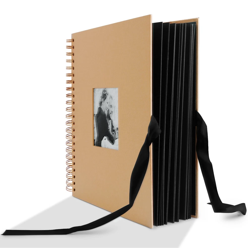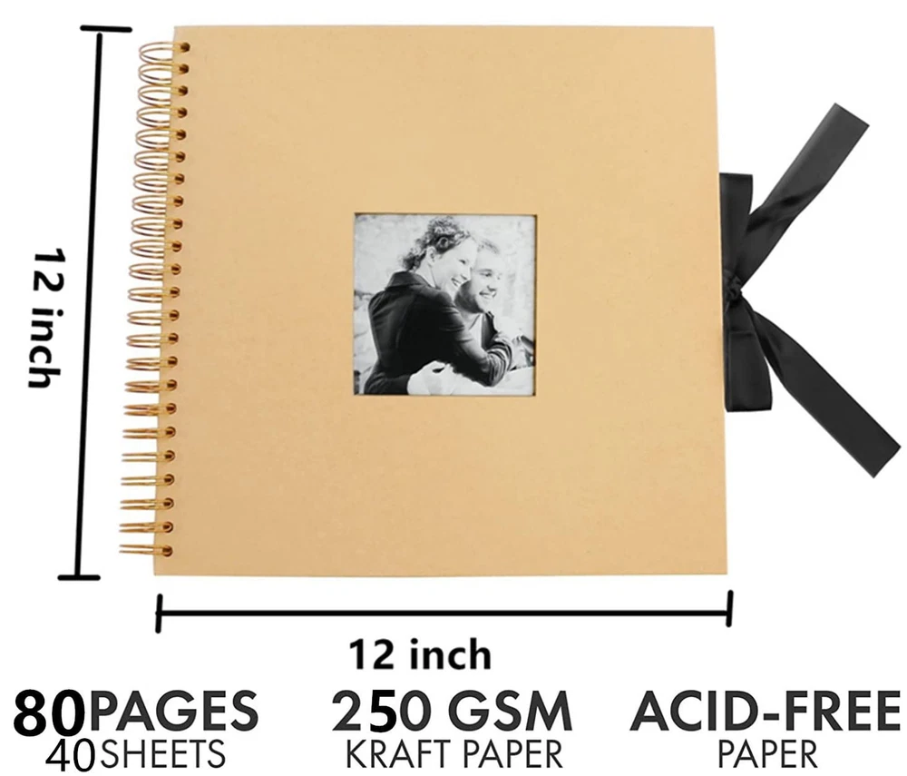 CUSTOMIZE DESIGN SCRAPBOOK: The large photo scrapbook is 12 x12 inch (size mesured without the spirals) and with cover photo opening. The photo album scrapbook has 40 sheets / 80 pages. Large photo albums with wrap tie closure. COVER PHOTOS OPENING BLANK SCRAPBOOK- Show off your favorite photo from the scrapbook album. The cover of the scrap book holds a wallet size photo where you can easily insert from the memory book inner front cover. SUPERIOR QUALITY SCRAPBOOK ALBUMS: Our scrapbook photo albums featured with hard cardboard cover, superior black blank pages, non-fading, Acid- and lignin-free, thick craft paper. Great self adhesive photo album for Valentines Day gifts. CREATIVE IDEAS FOR USE: Create a special family photo album, anniversary gift, holiday snaps, memory book, reminiscence packs, job leaving gift, display old school photos or wedding memories scrap book journals with our scrap book photo albums. PERFECT SCRAPBOOKS GIFTS: Valentines day gifts for her/ him, Christmas gift, Mothers' Day gift, baby shower gift, birthday gifts, wedding guest book, photo storage, travel record, back to school gifts or adventure book, great memory photo book album for adults or kids.